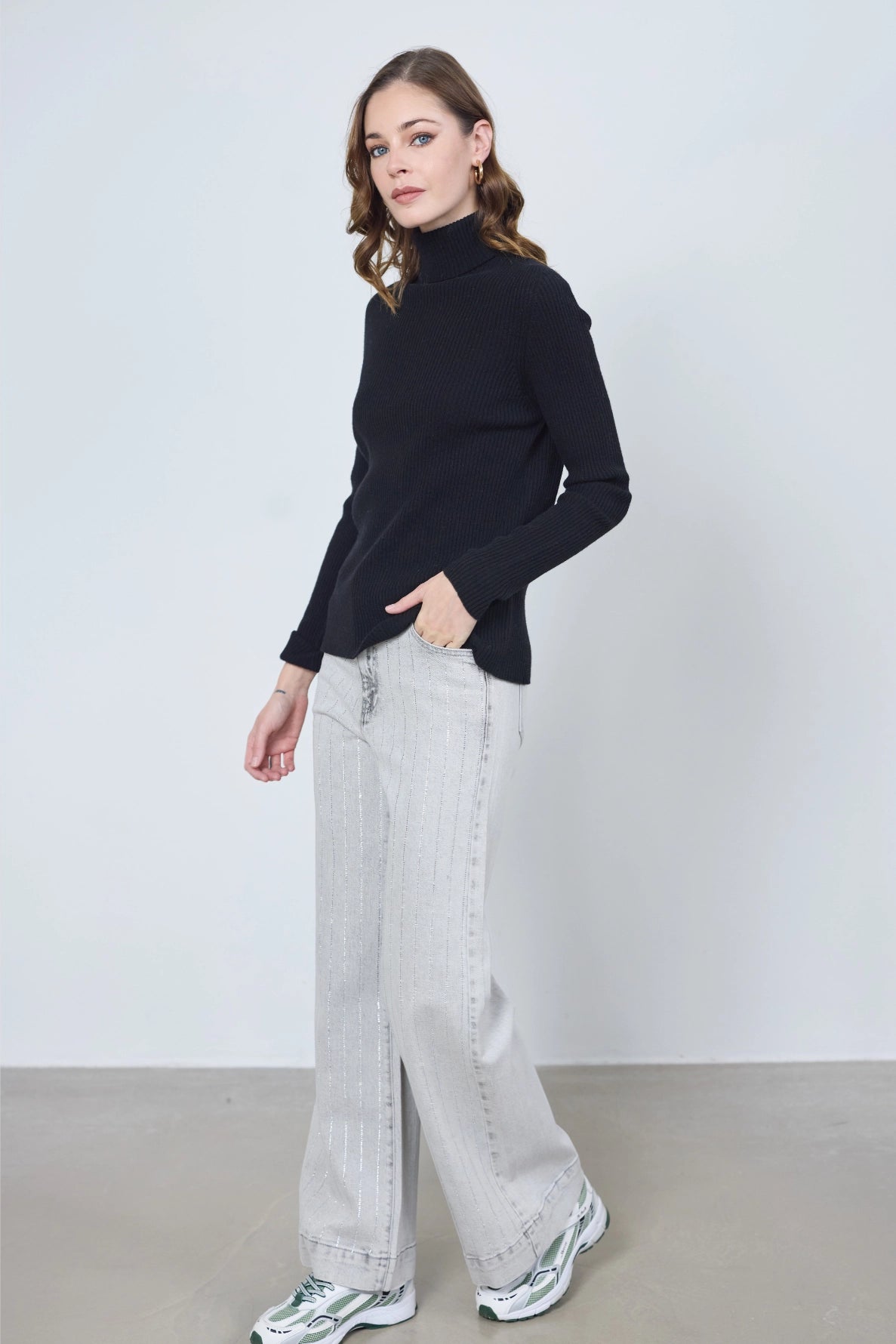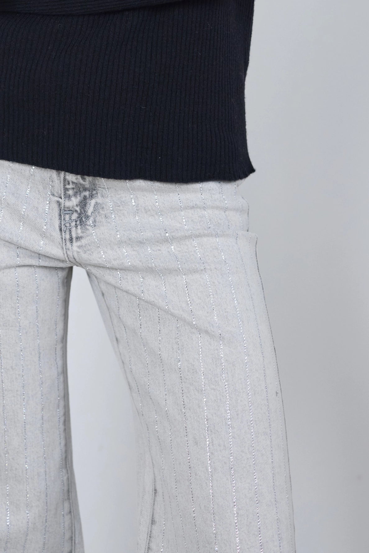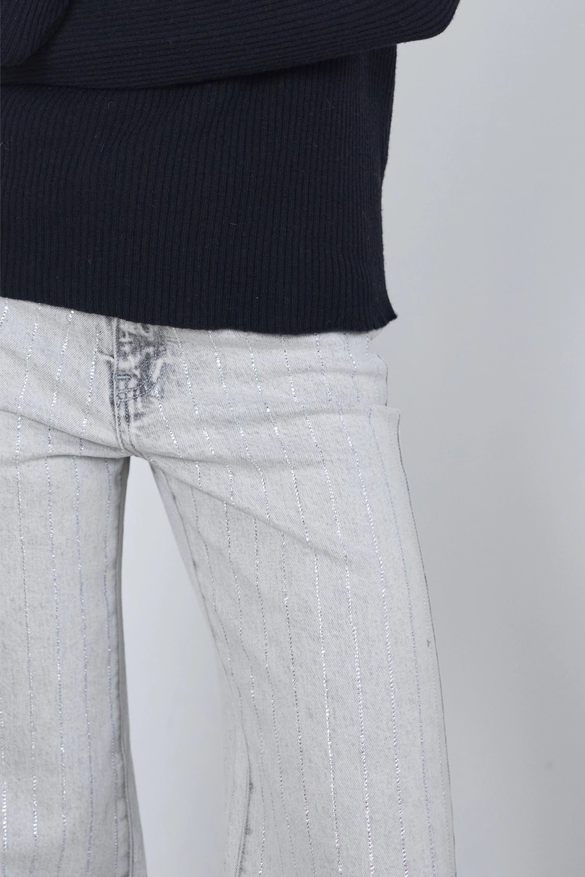 Le jeans Bulgari Ligne allie élégance et éclat subtil grâce à ses lignes de strass délicatement posées à l’avant. Sa coupe wide moderne et sa toile stretch offrent un confort maximal avec une touche sophistiquée.