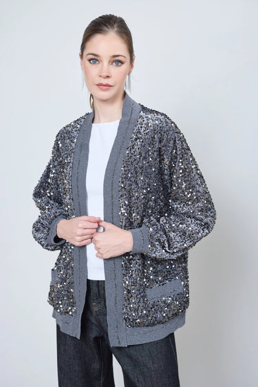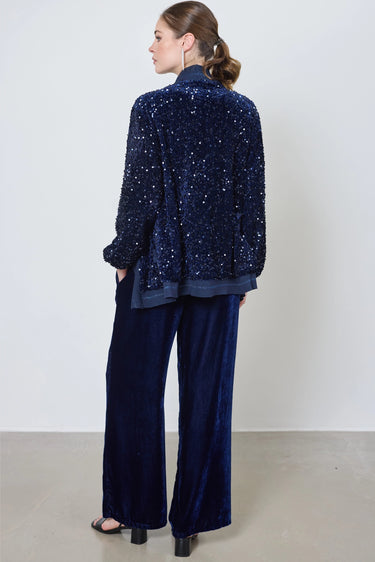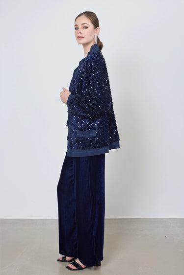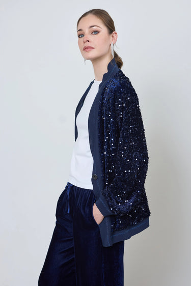 La veste Jeanne en velours lisse allie élégance et confort. Sa broderie délicate de sequins apporte subtilité et sophistication à toutes vos tenues.