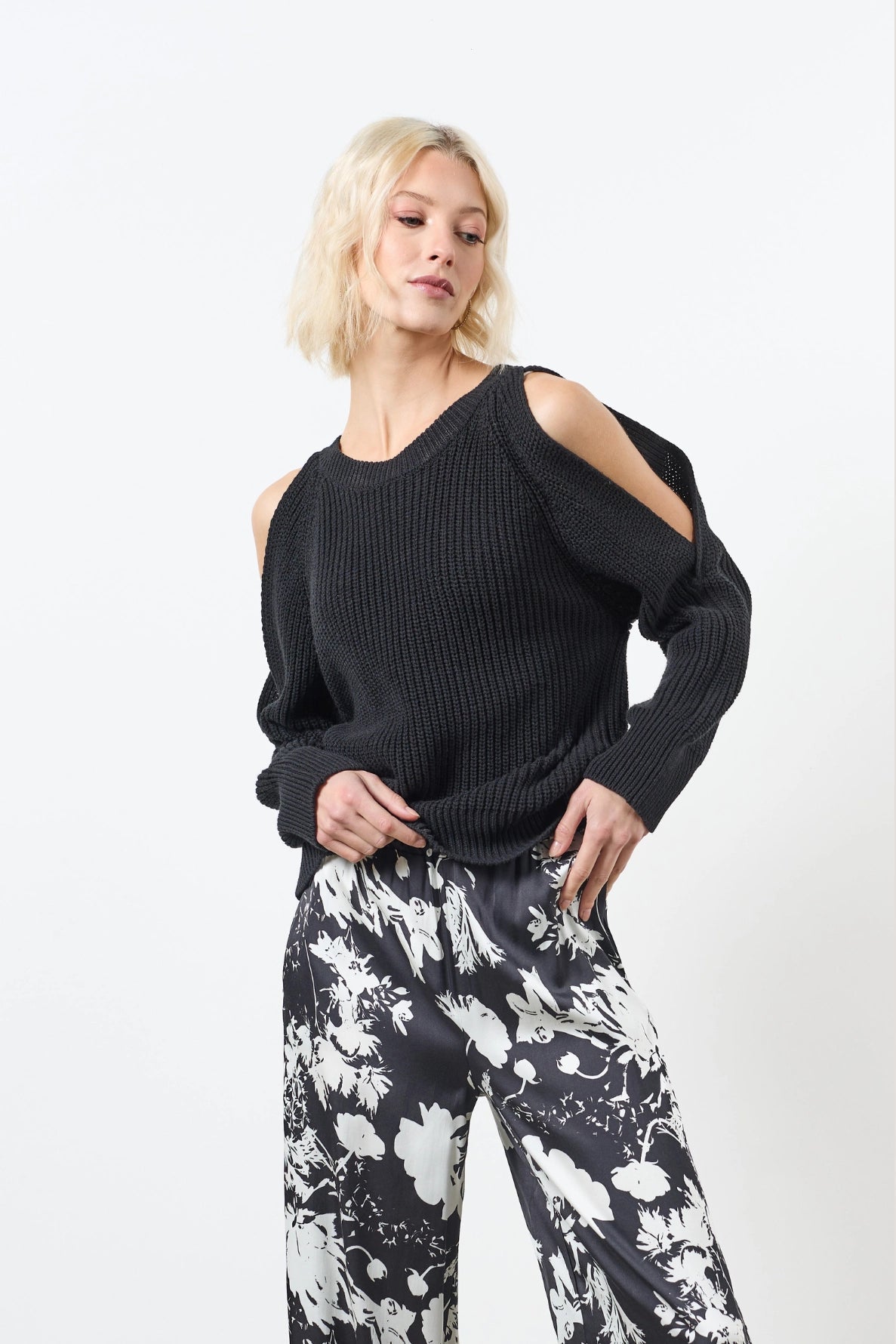 Apportez une touche d'originalité à votre garde-robe avec ce pull à ouverture épaule. Son design moderne et épuré, combiné à des couleurs intemporelles (off white et black), en fait un incontournable pour un look chic et décontracté.