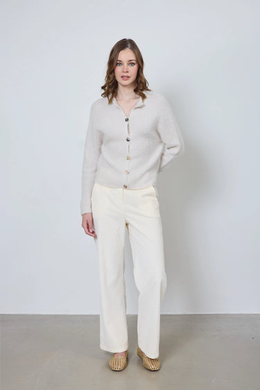Le gilet Romy allie confort et féminité. Sa maille douce, son col rond et ses manches droites en font une pièce facile à porter et à superposer au quotidien.
