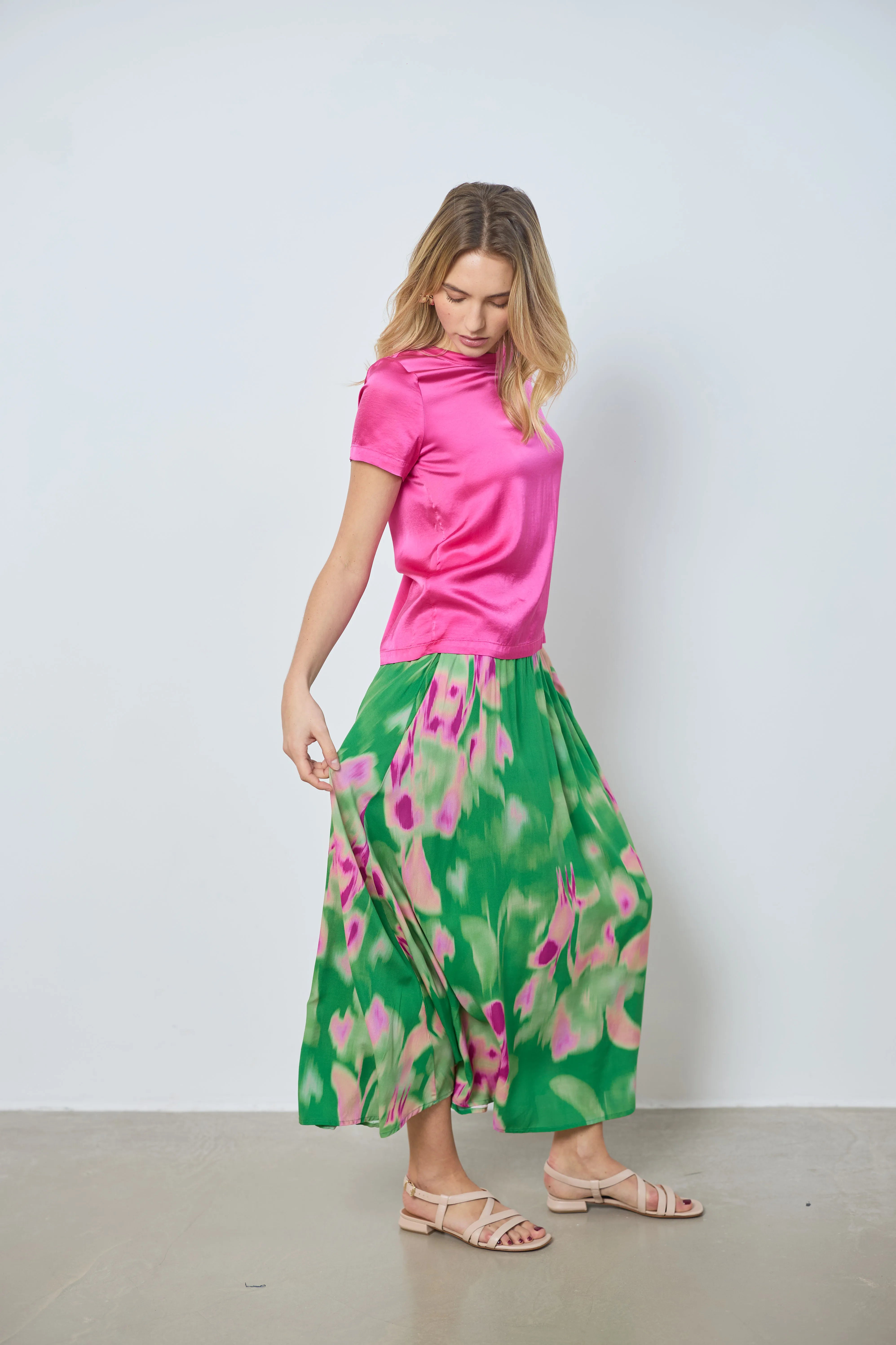 Apportez style et légèreté avec la jupe Maya, longue et fluide. Son imprimé original créé par la directrice artistique offre une touche unique et élégante à votre tenue.