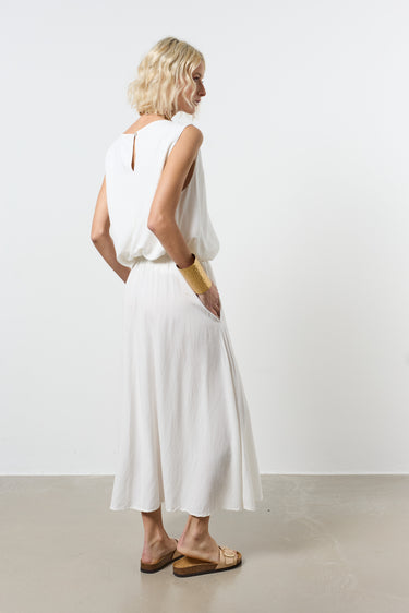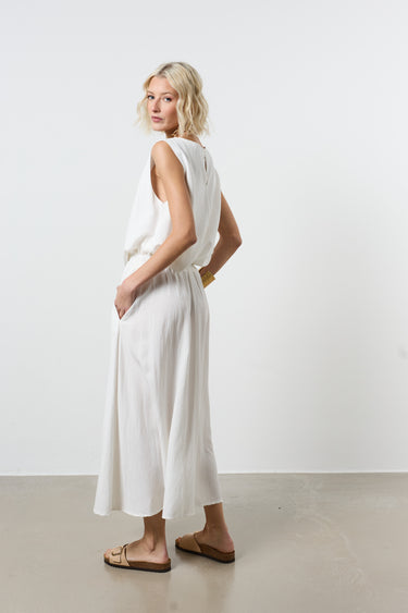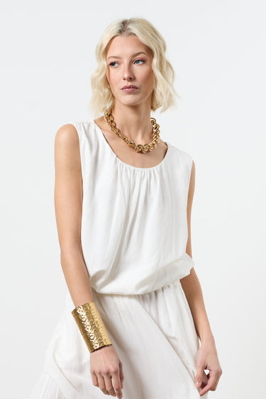 Top sans manches à boutonnière arrière, alliant simplicité et sophistication pour un look chic et confortable.