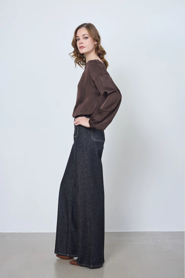 Le jean Palm Beach allie confort et style vintage-chic. Sa coupe palazzo fluide et ses poches plaquées boutonnées apportent élégance et praticité au quotidien.