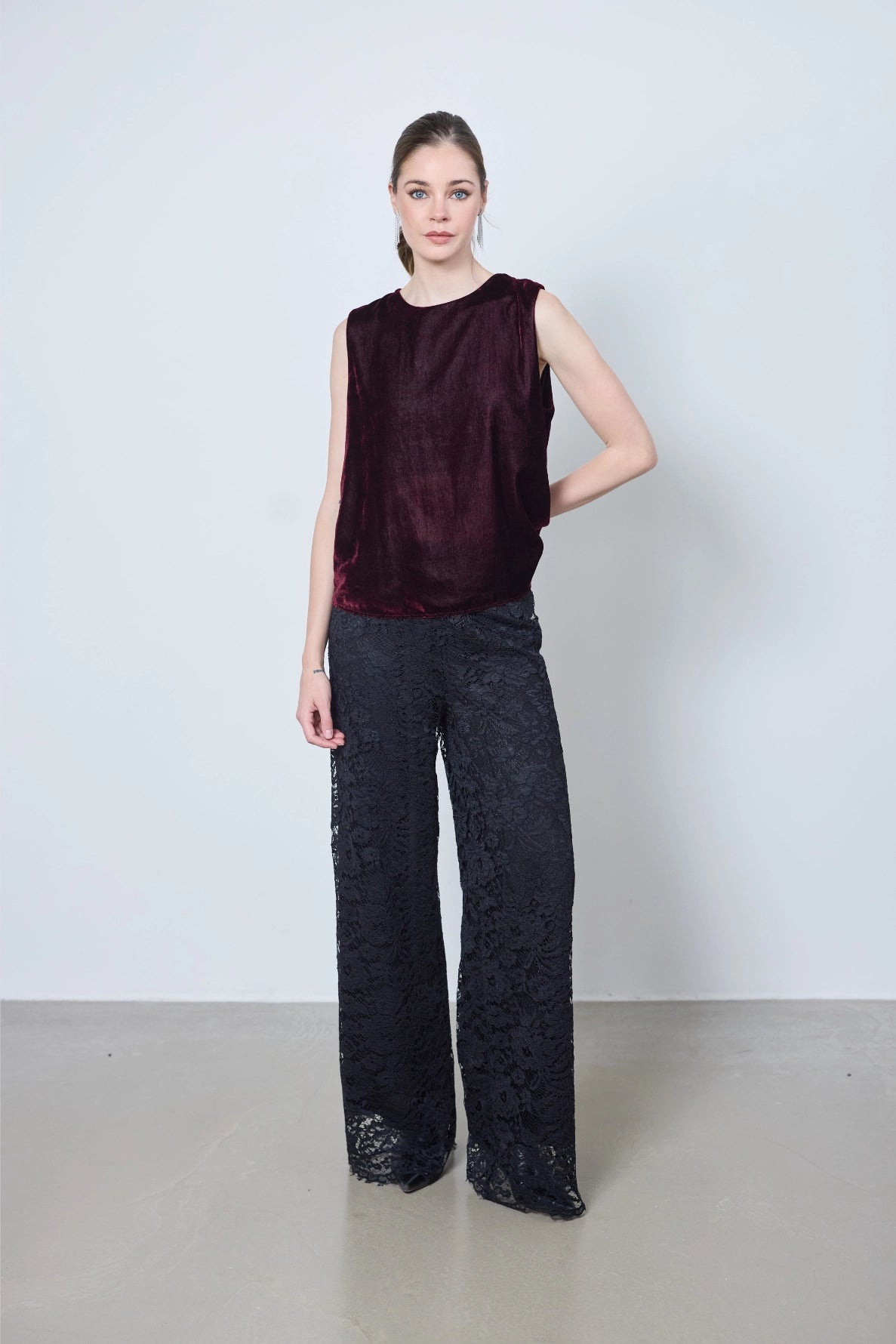 Osez une allure sophistiquée avec le pantalon Flora, entièrement confectionné en dentelle et subtilement doublé pour un jeu de transparence maîtrisé. Sa ceinture élastique offre un confort optimal tout en soulignant la taille avec élégance.