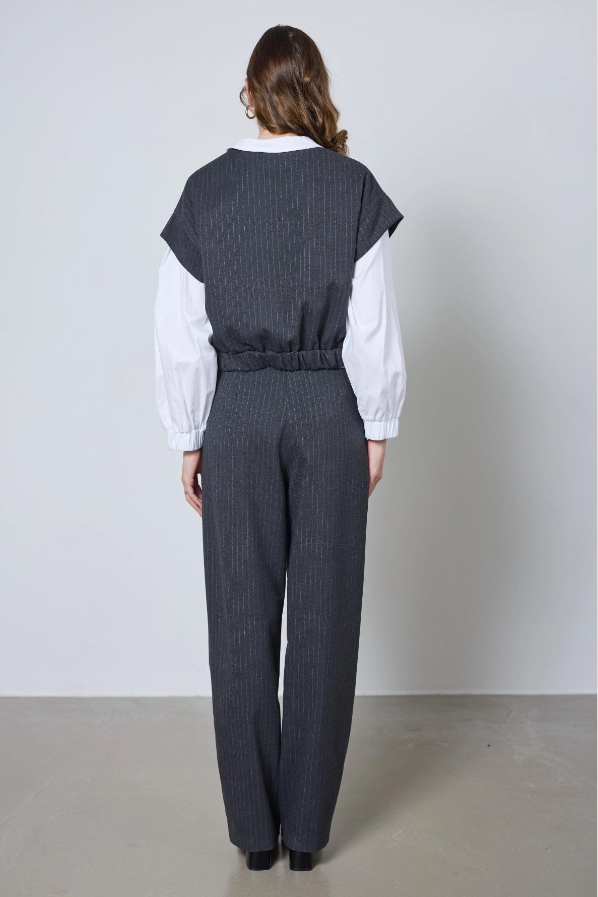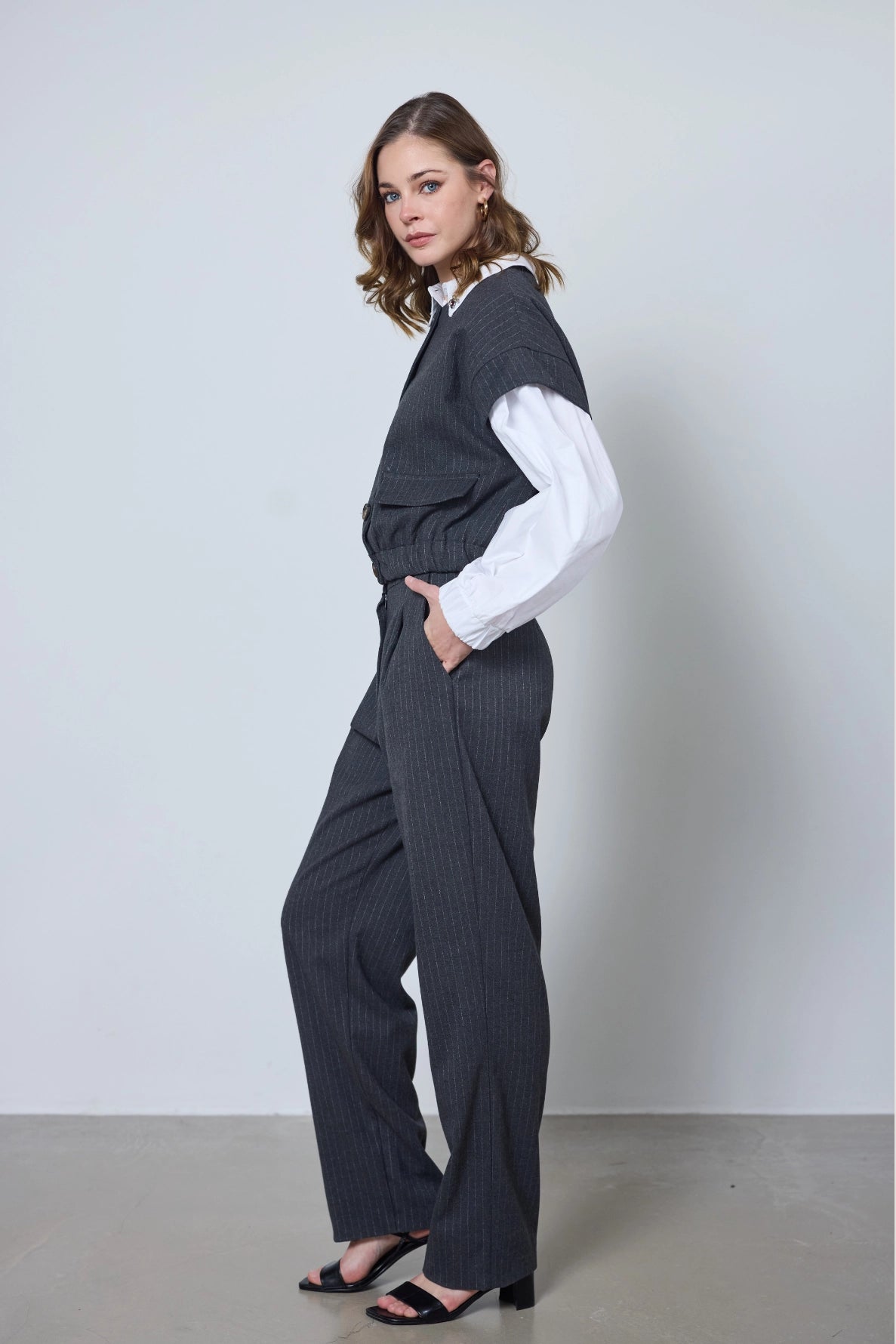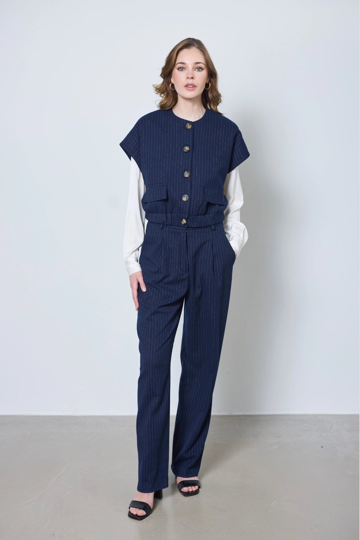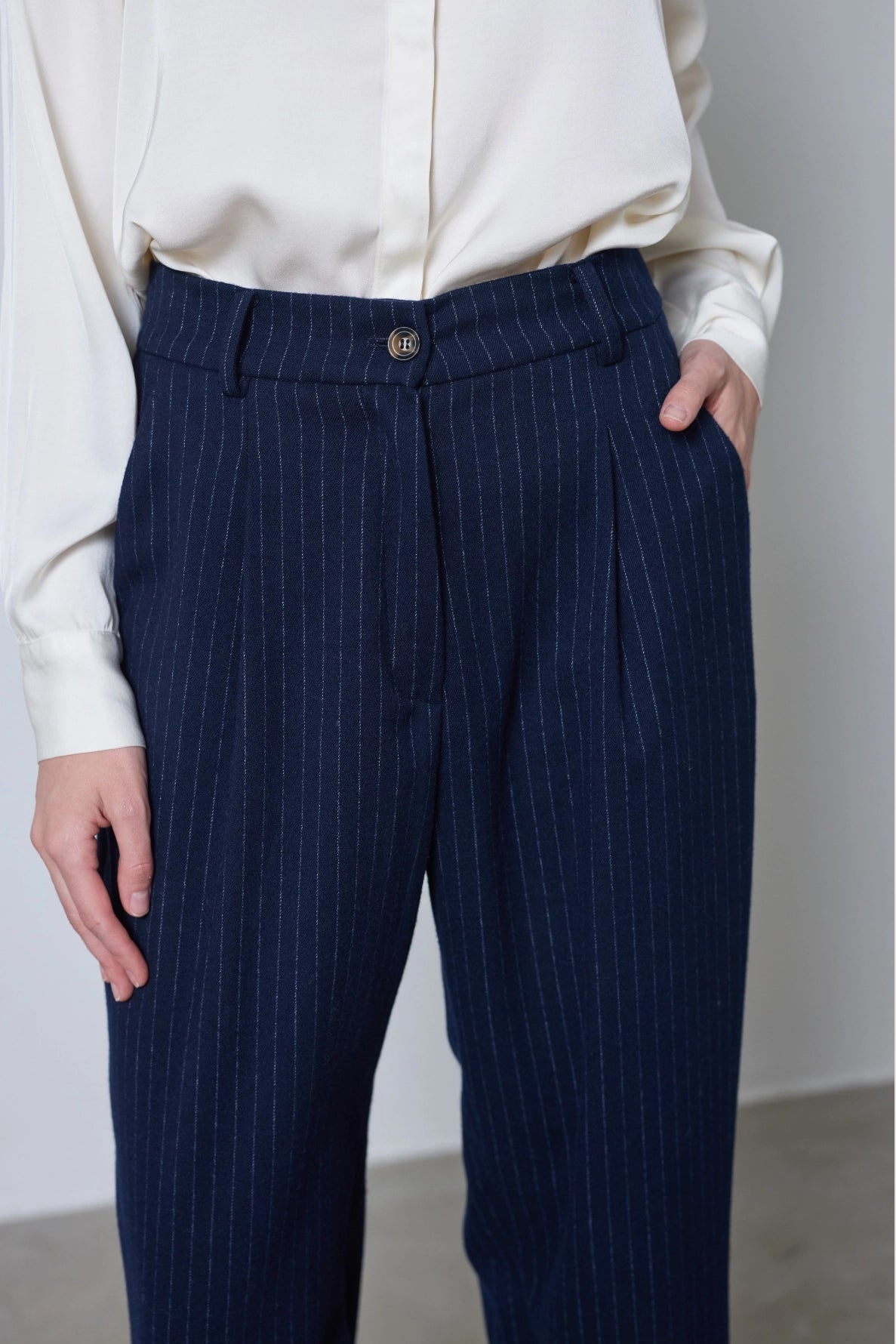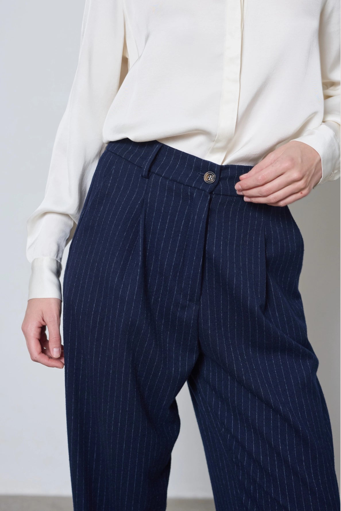 Le pantalon Jessica est un essentiel revisité dans une version rayée chic et moderne. Sa coupe droite et sa matière fluide en font une pièce idéale pour vos looks de bureau ou vos tenues du quotidien. Ce pantalon va en ensemble avec la veste Anaëlle.