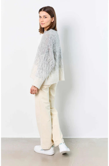Pull oversize ajouré en dégradé de couleurs, avec col rond et manches 3/4. Élégant et moderne, il apporte style et confort à vos tenues.