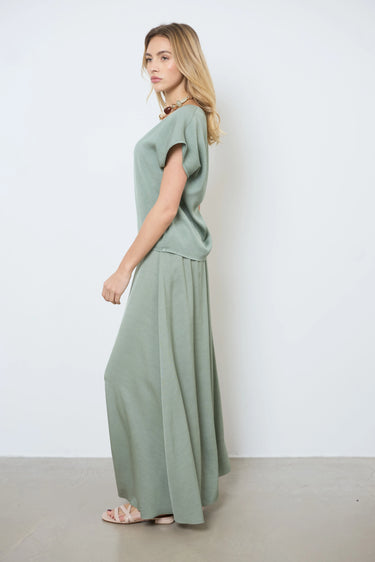 Apportez confort et modernité avec la jupe Antoinette, longue et élastique à la taille. Sa matière fluide légèrement sportive offre aisance et style pour un look décontracté chic.