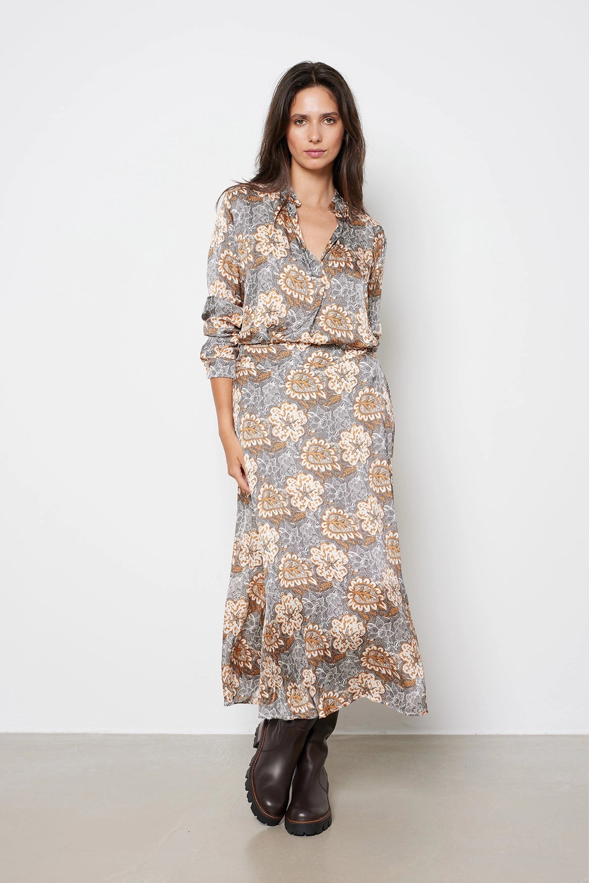 Apportez une touche bohème et féminine à votre tenue avec cette jupe longue à l’imprimé fleuri. Fluide et élégante, elle accompagne vos mouvements avec légèreté.