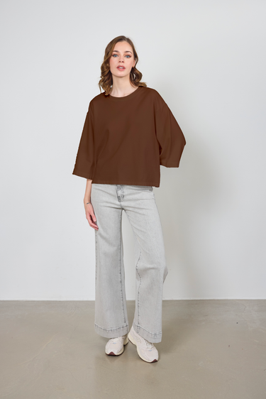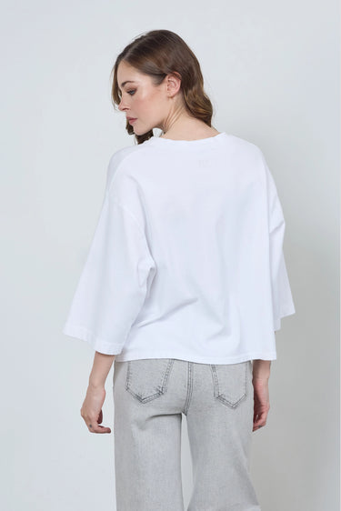 Le t-shirt Kenza revient avec de nouveaux coloris tendance. Sa coupe oversize et ses manches courtes apportent confort et style décontracté à toutes vos tenues.