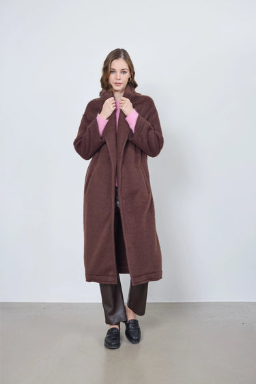 Le manteau Martina allie élégance et modernité. Sa coupe longue et son col cavalier apportent chic et décontraction, avec un tombé fluide et naturel.