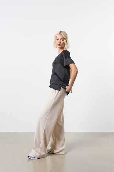Elegant straight-leg trousers with subtle trim, perfect for adding modernity and chic to your wardrobe.
