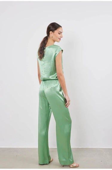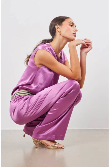 Stretch satin trousers combining comfort and elegance. Invisible waistband and satin fabric for a flawless silhouette and a sophisticated look.
