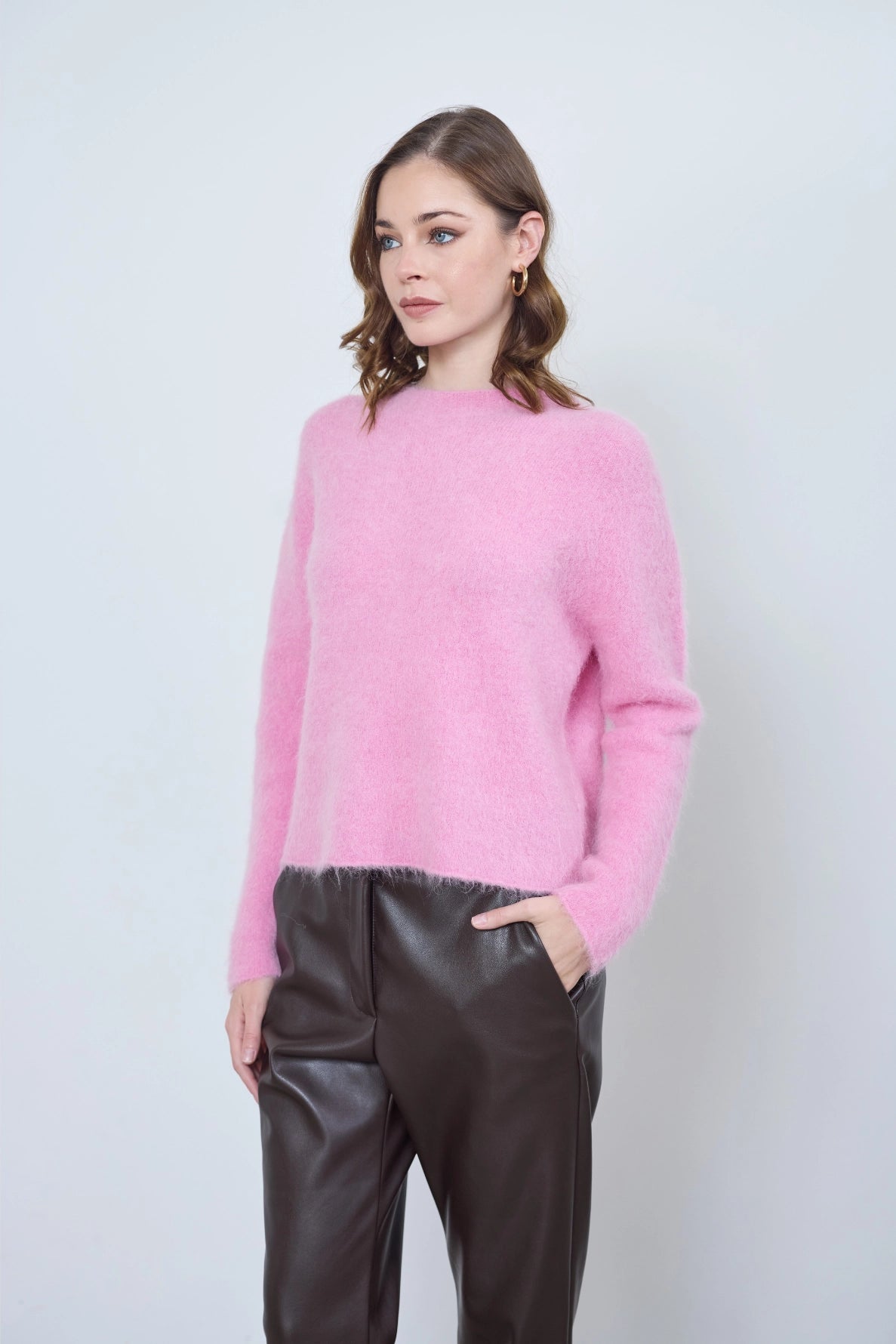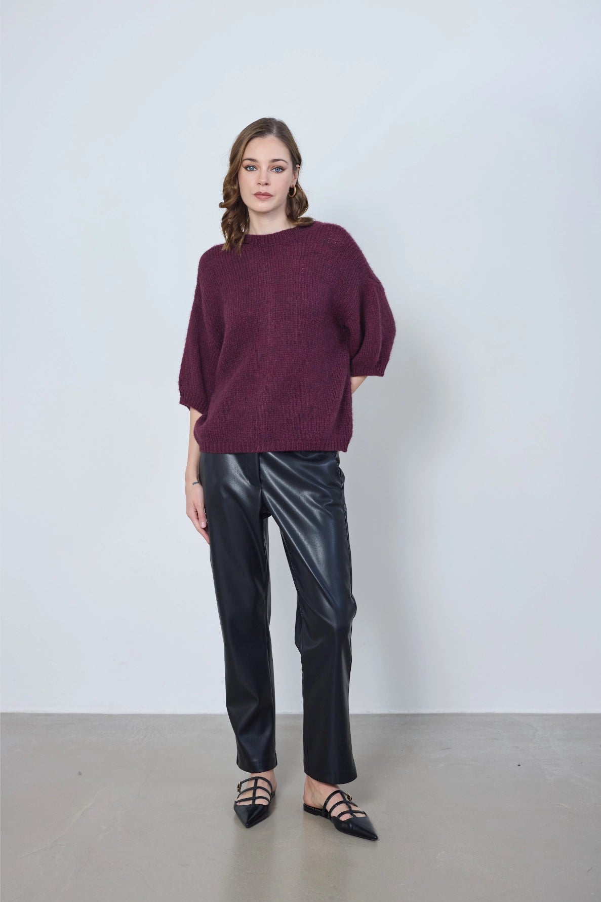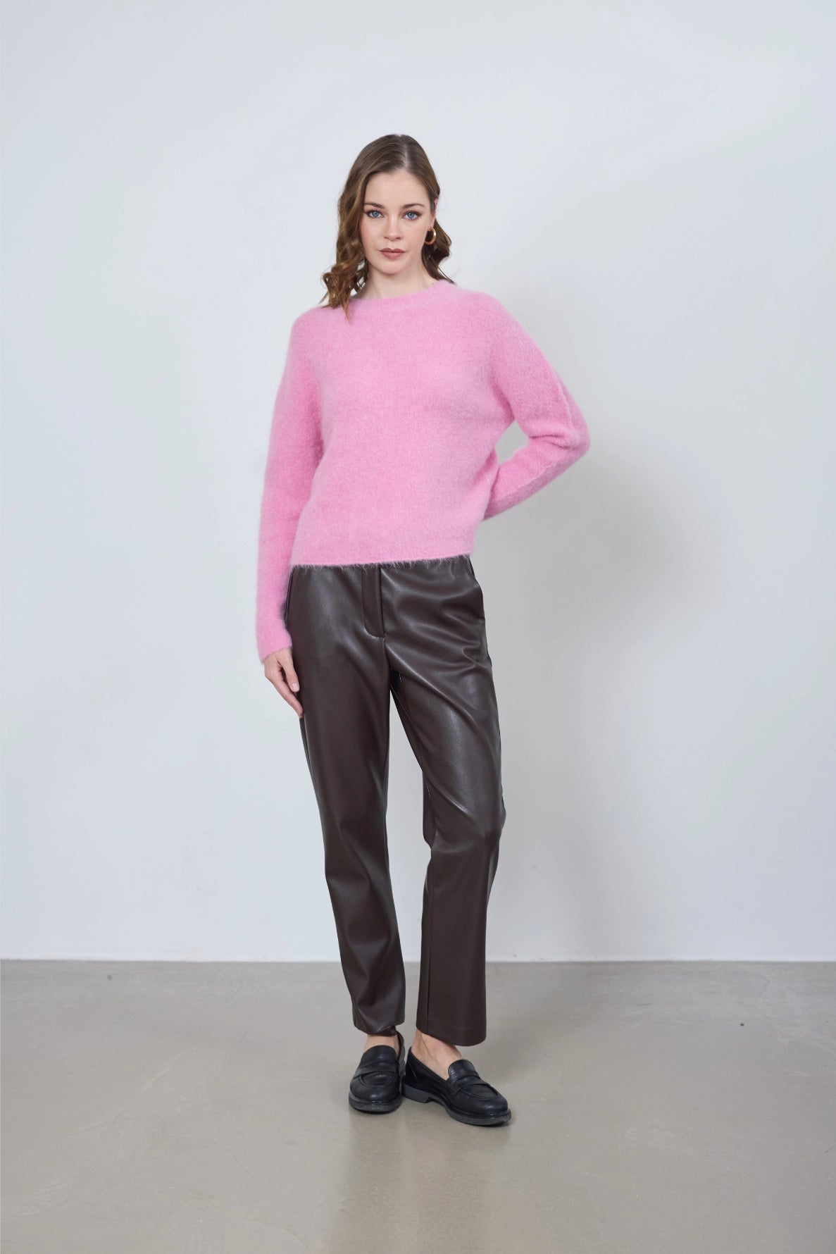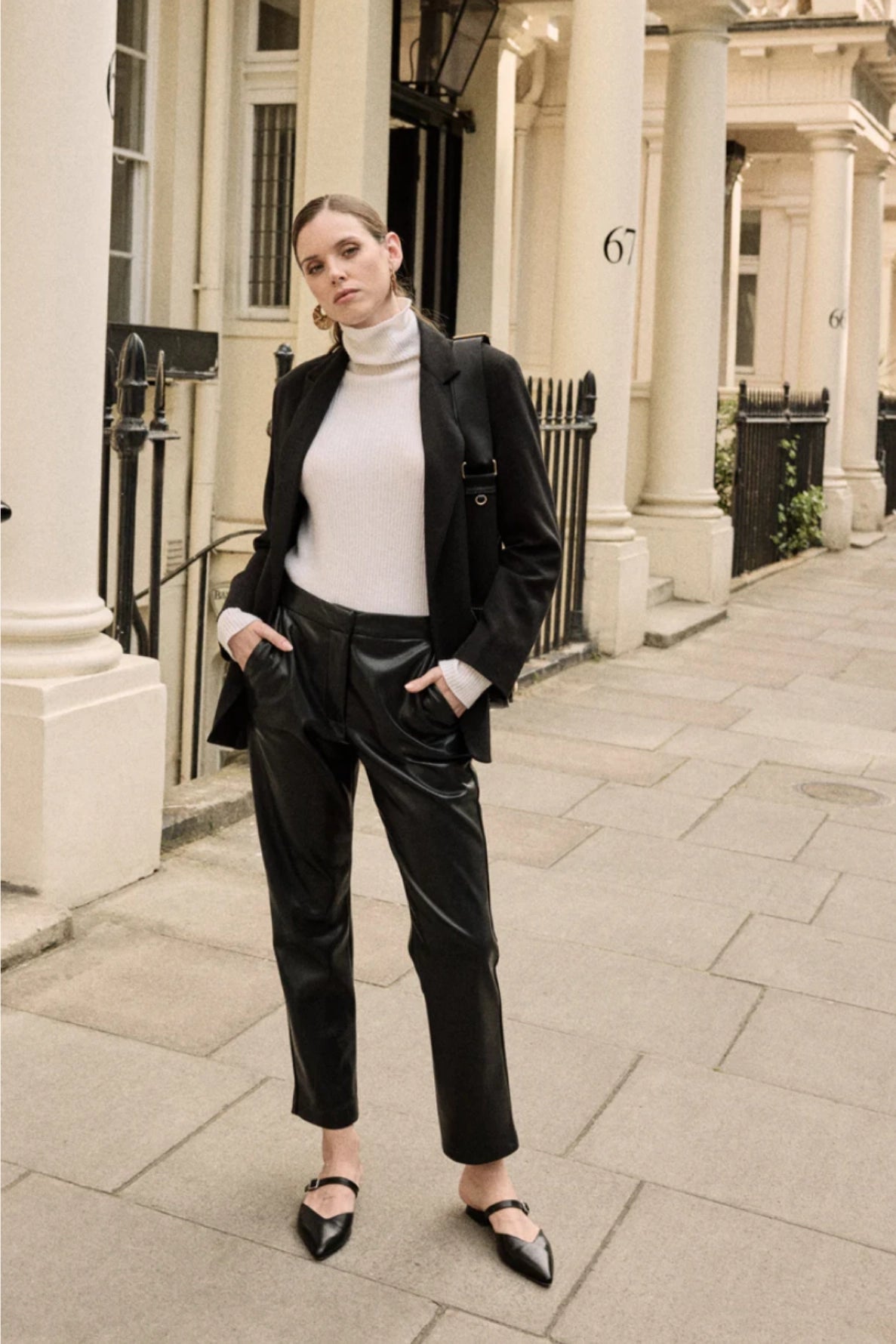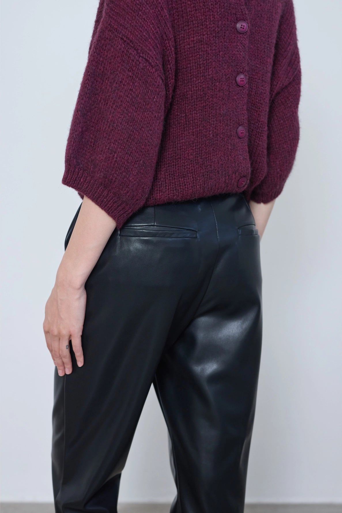 The Laurène pants boast a bold, modern look with their faux leather effect. Their straight cut and flowing fabric add character to any outfit without sacrificing comfort.