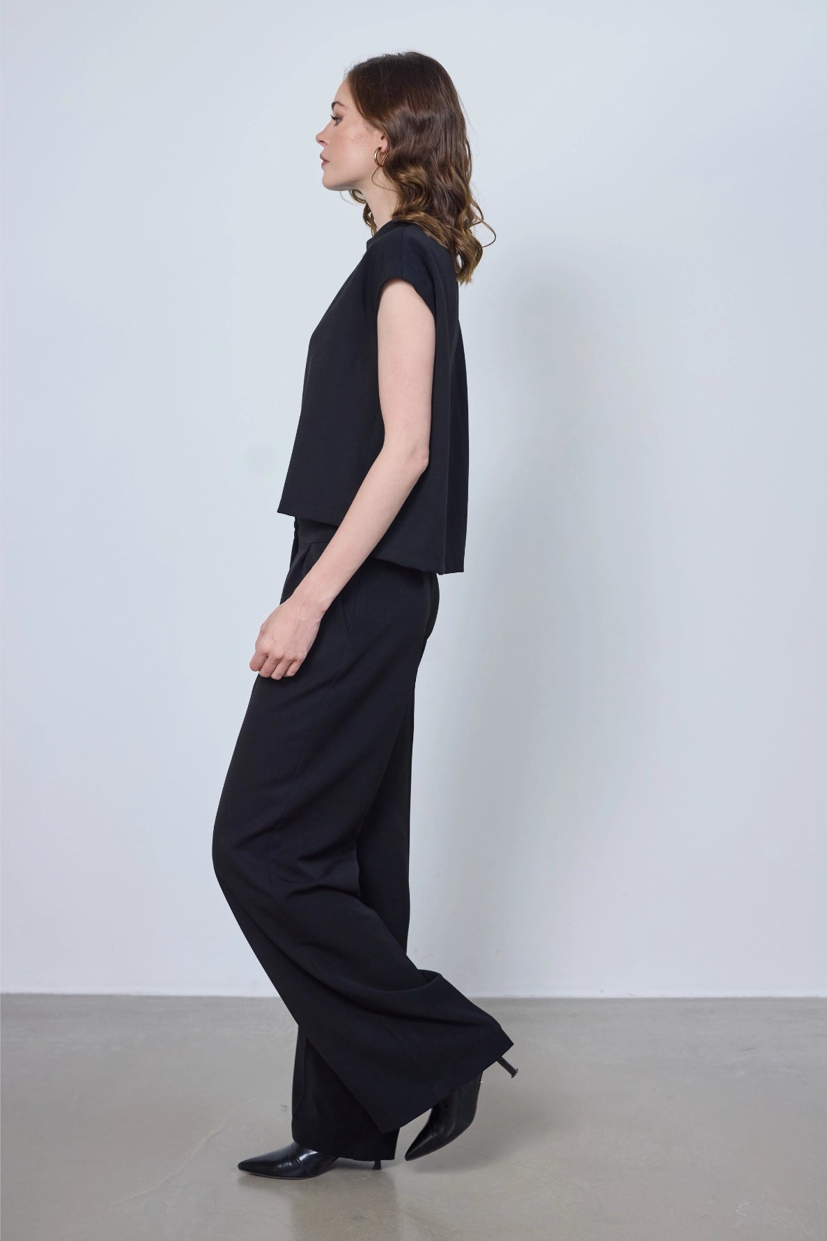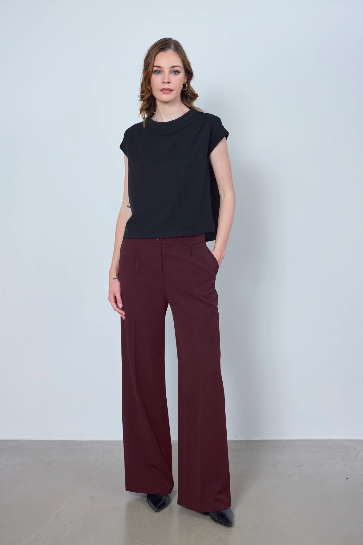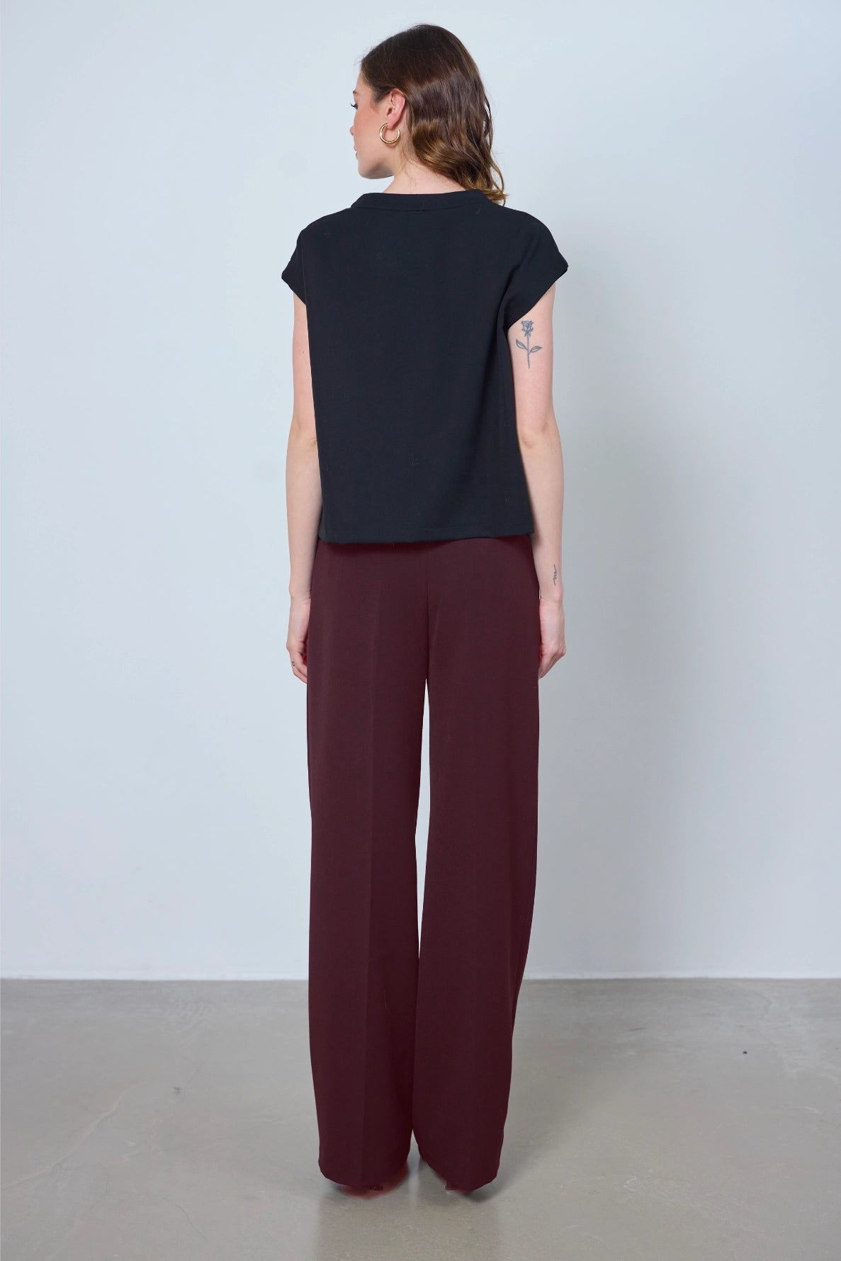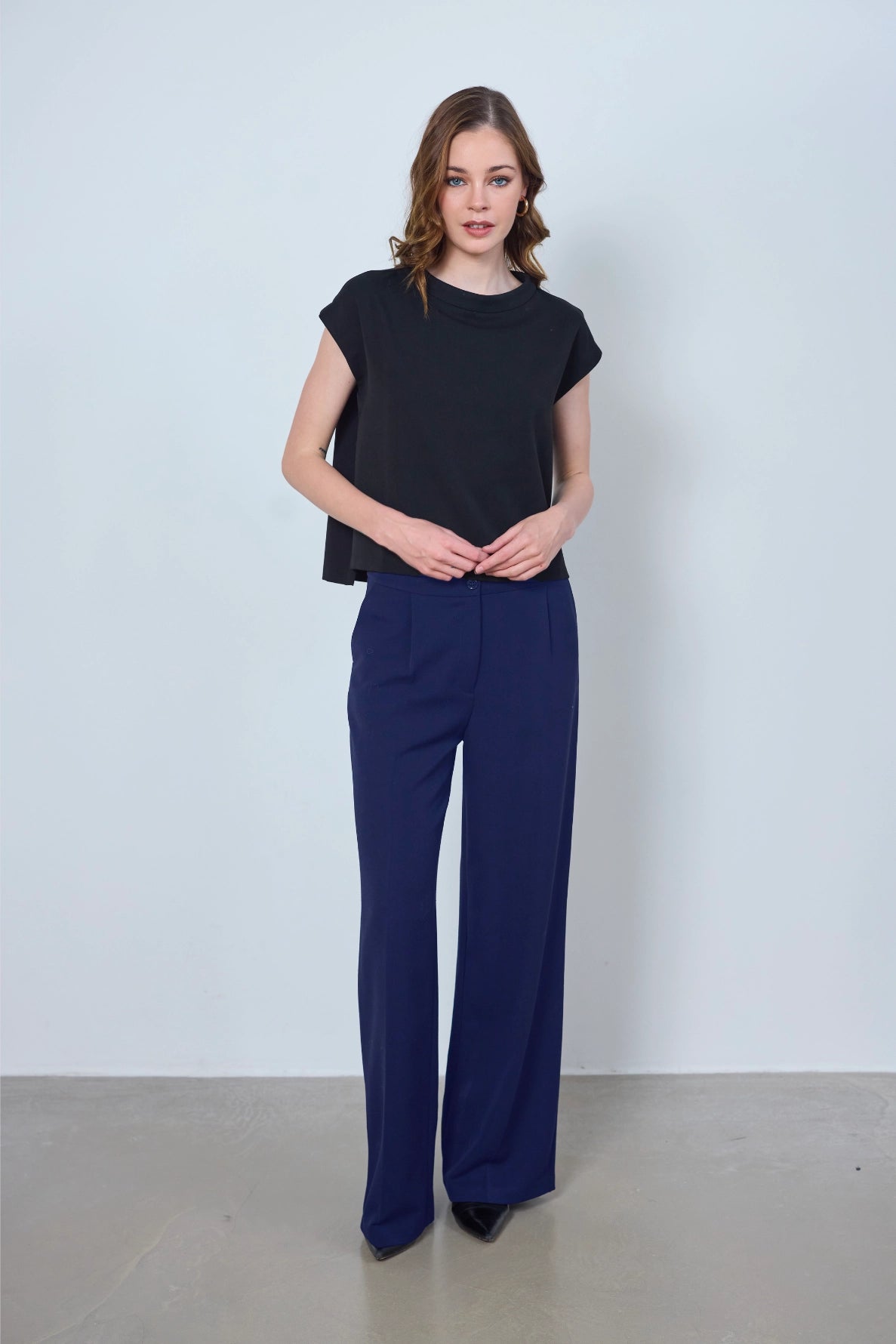 Chic allure and absolute comfort: the Simone pants tick all the boxes. Their straight cut, structured by a permanent pleat, is complemented by an elasticated waistband with a drawstring, for a look that's as elegant as it is easy to wear.