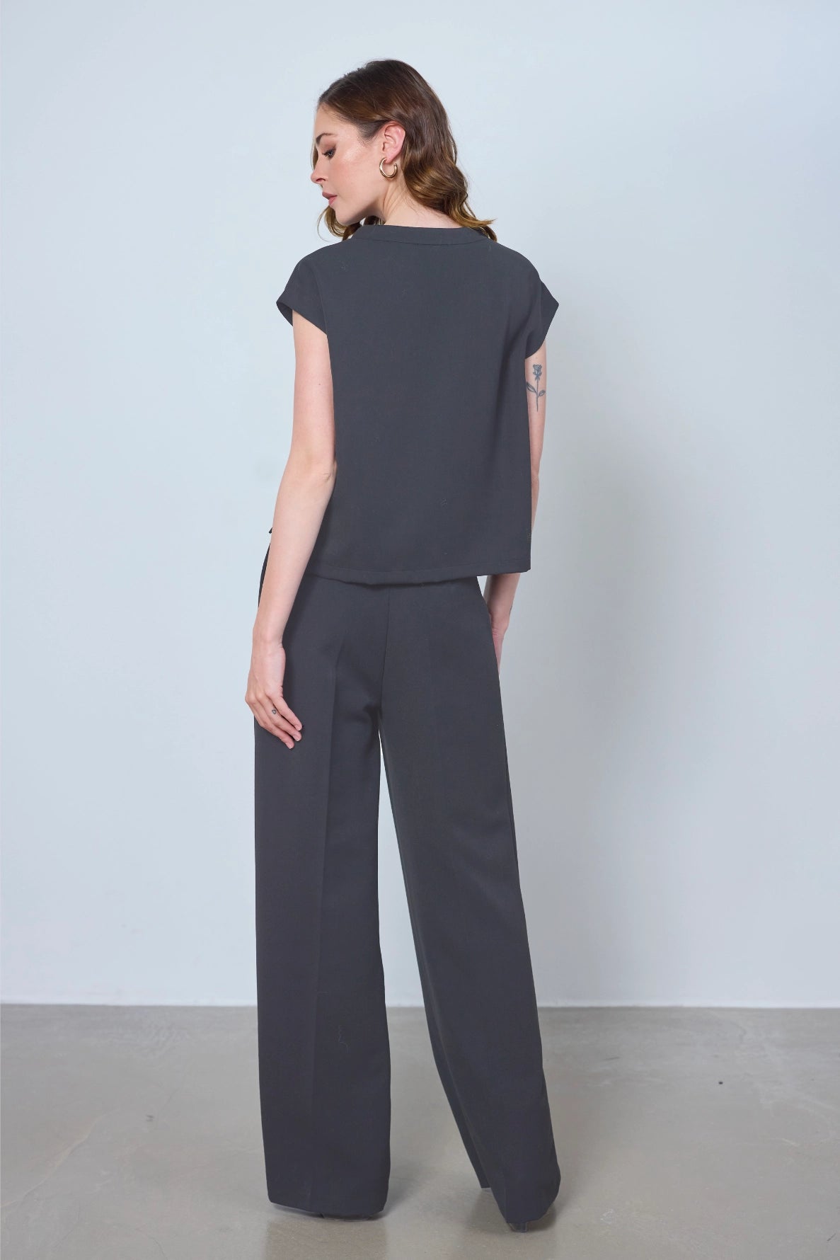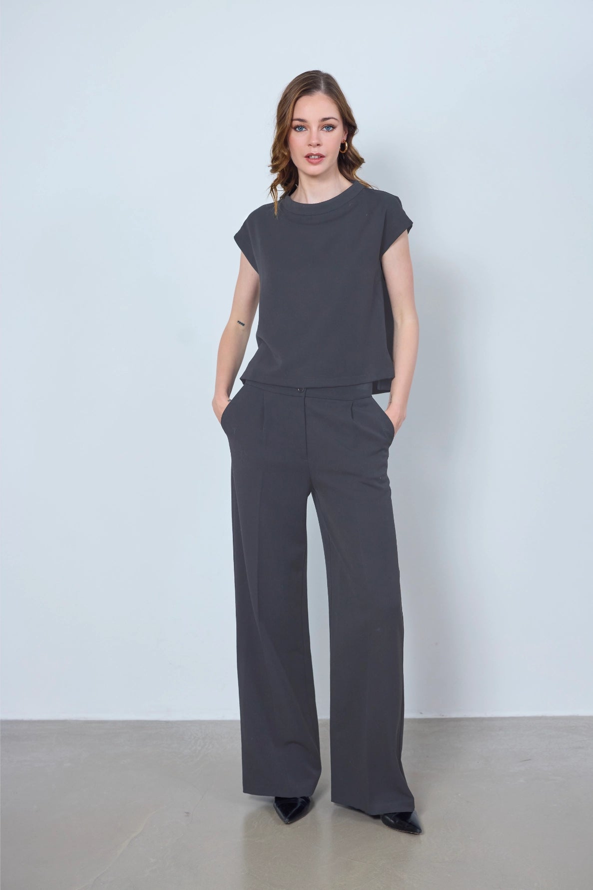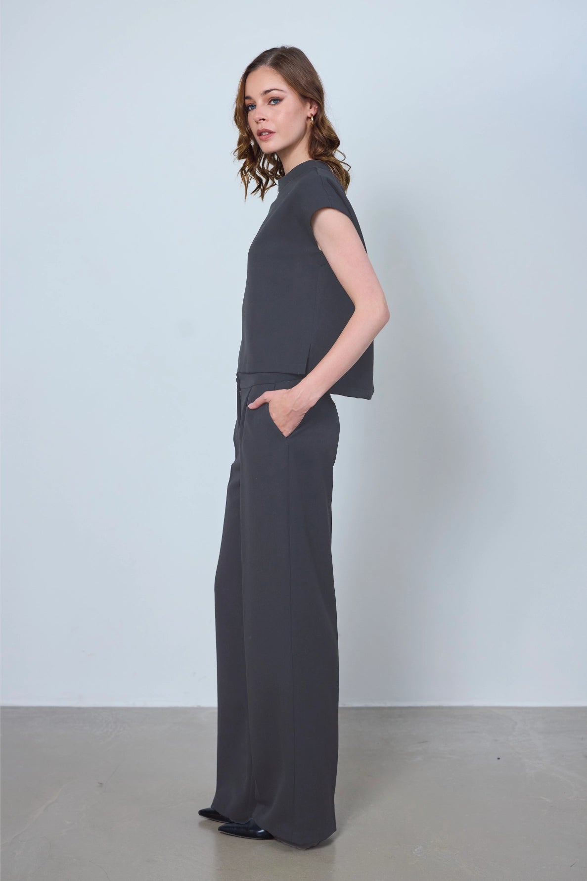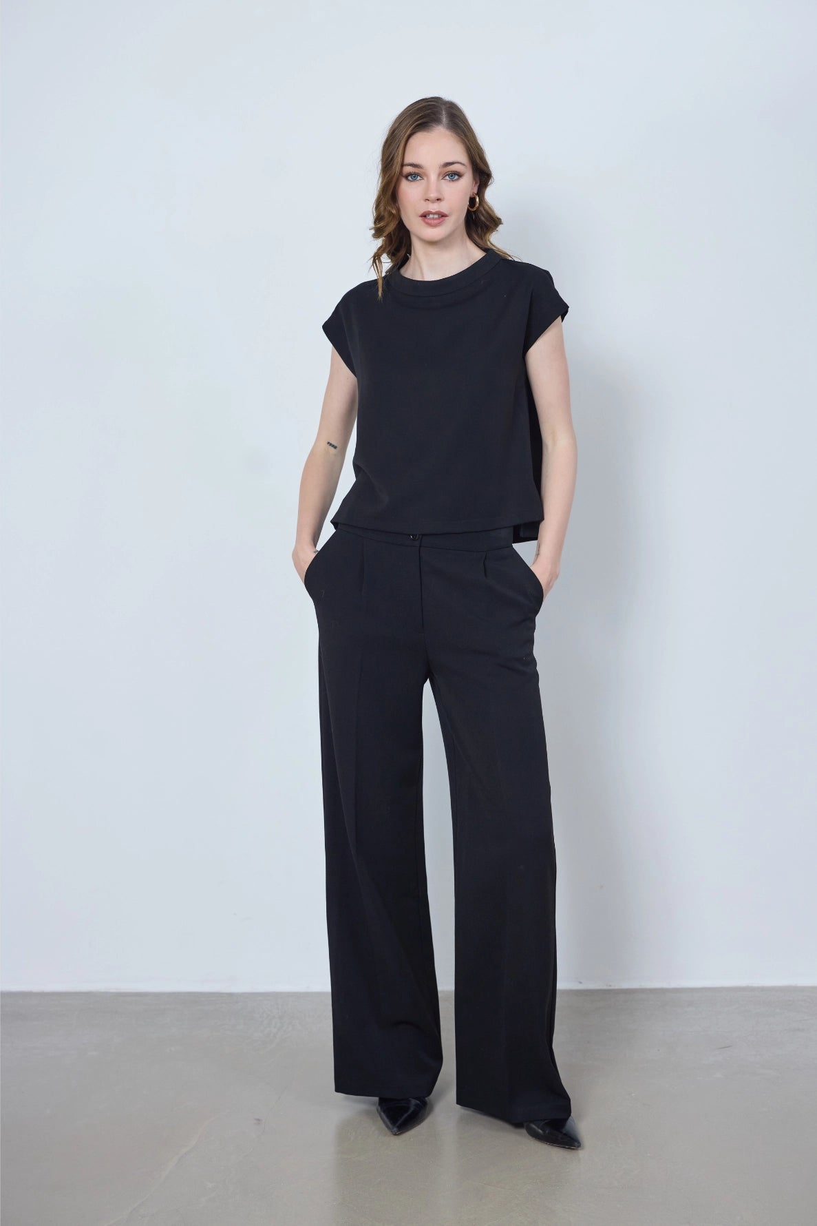 Chic allure and absolute comfort: the Simone pants tick all the boxes. Their straight cut, structured by a permanent pleat, is complemented by an elasticated waistband with a drawstring, for a look that's as elegant as it is easy to wear.