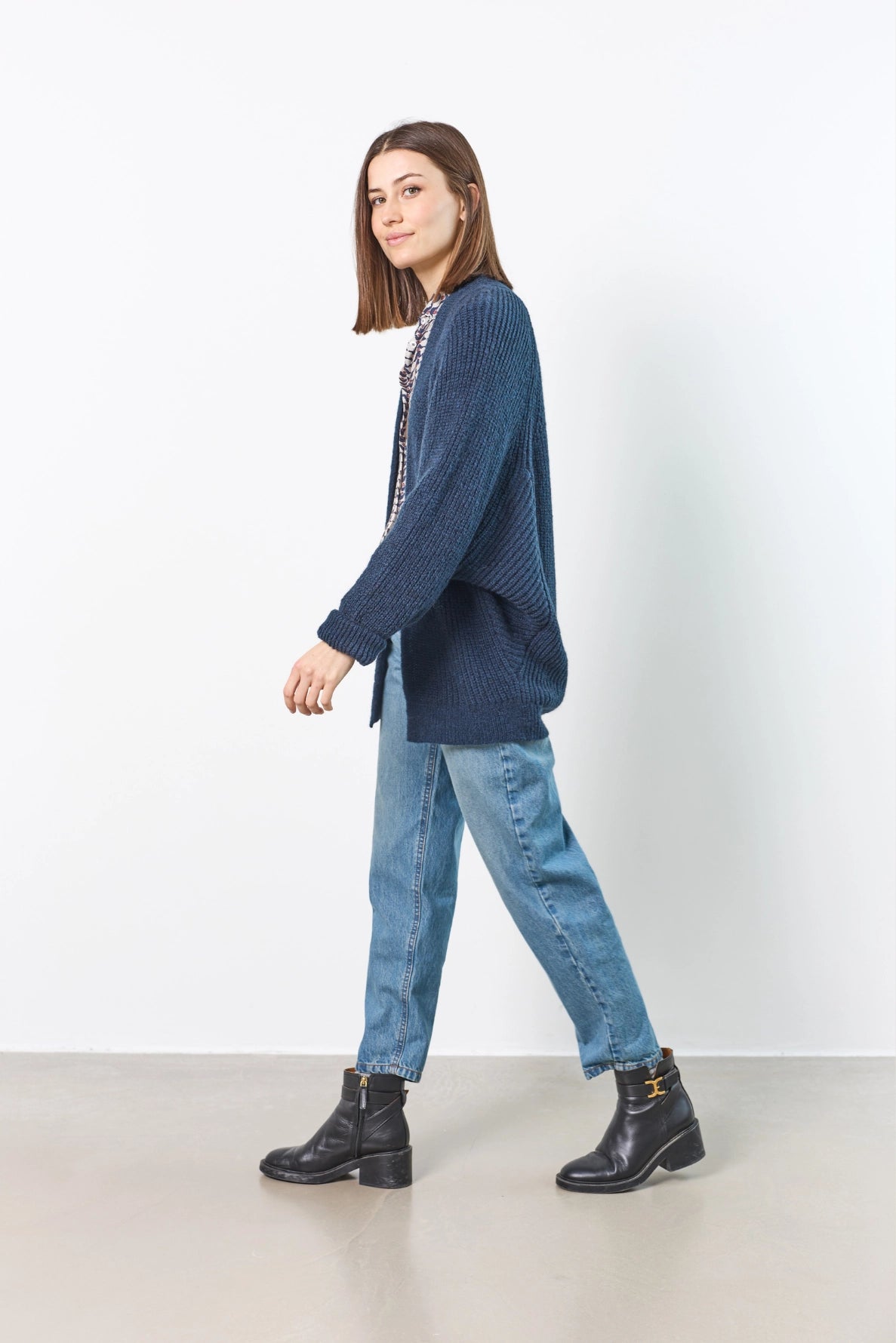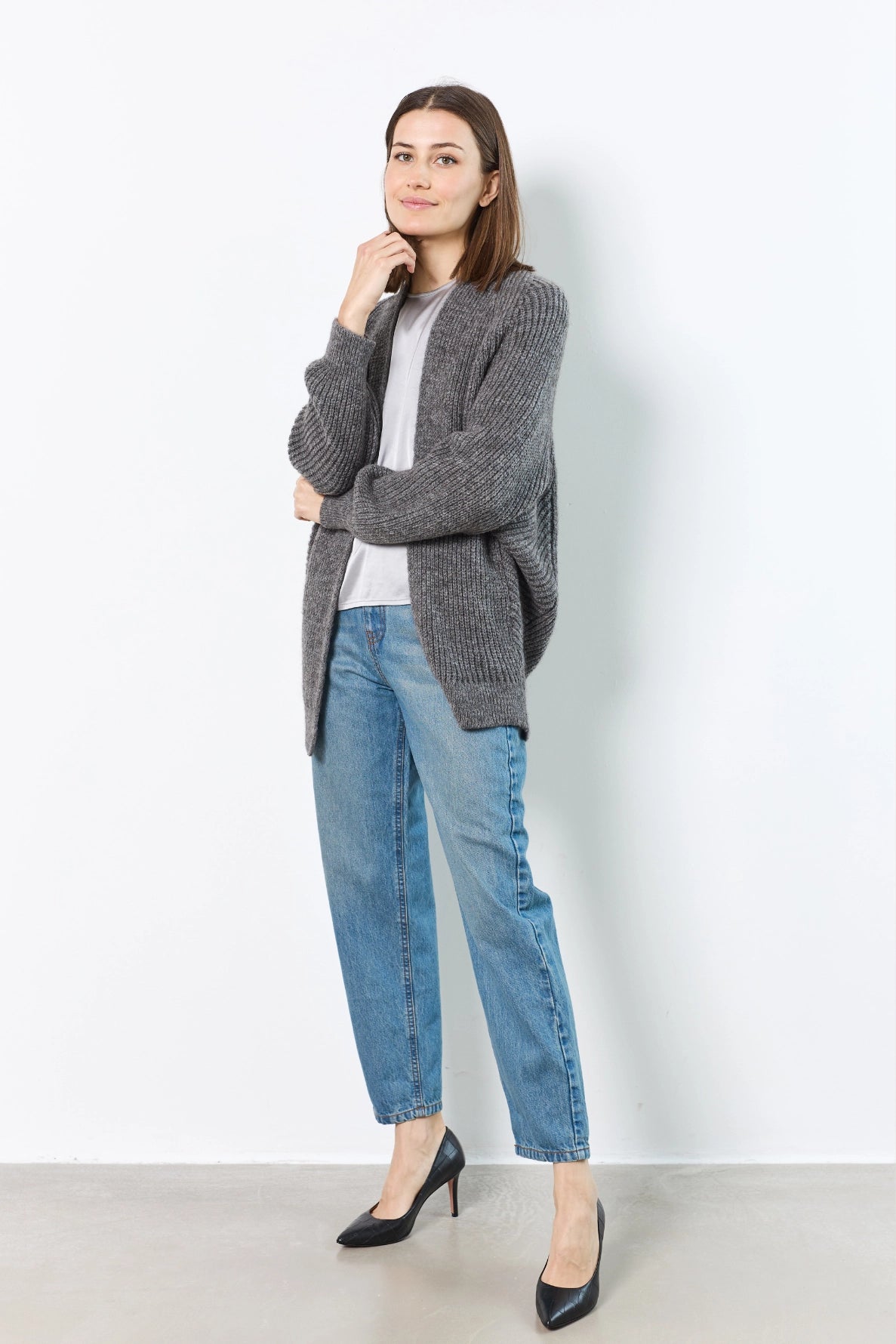 Short, batwing-sleeved cardigan with no buttons. Comfortable and stylish, it keeps you warm while adding a trendy touch to your outfits.