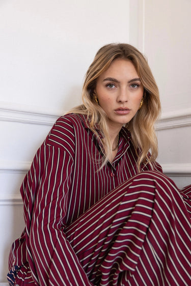 Het gestreepte Laure-overhemd combineert grafische stijl met een streven naar duurzaamheid. De vloeiende snit en subtiele strepen geven je outfits elegantie en moderniteit.