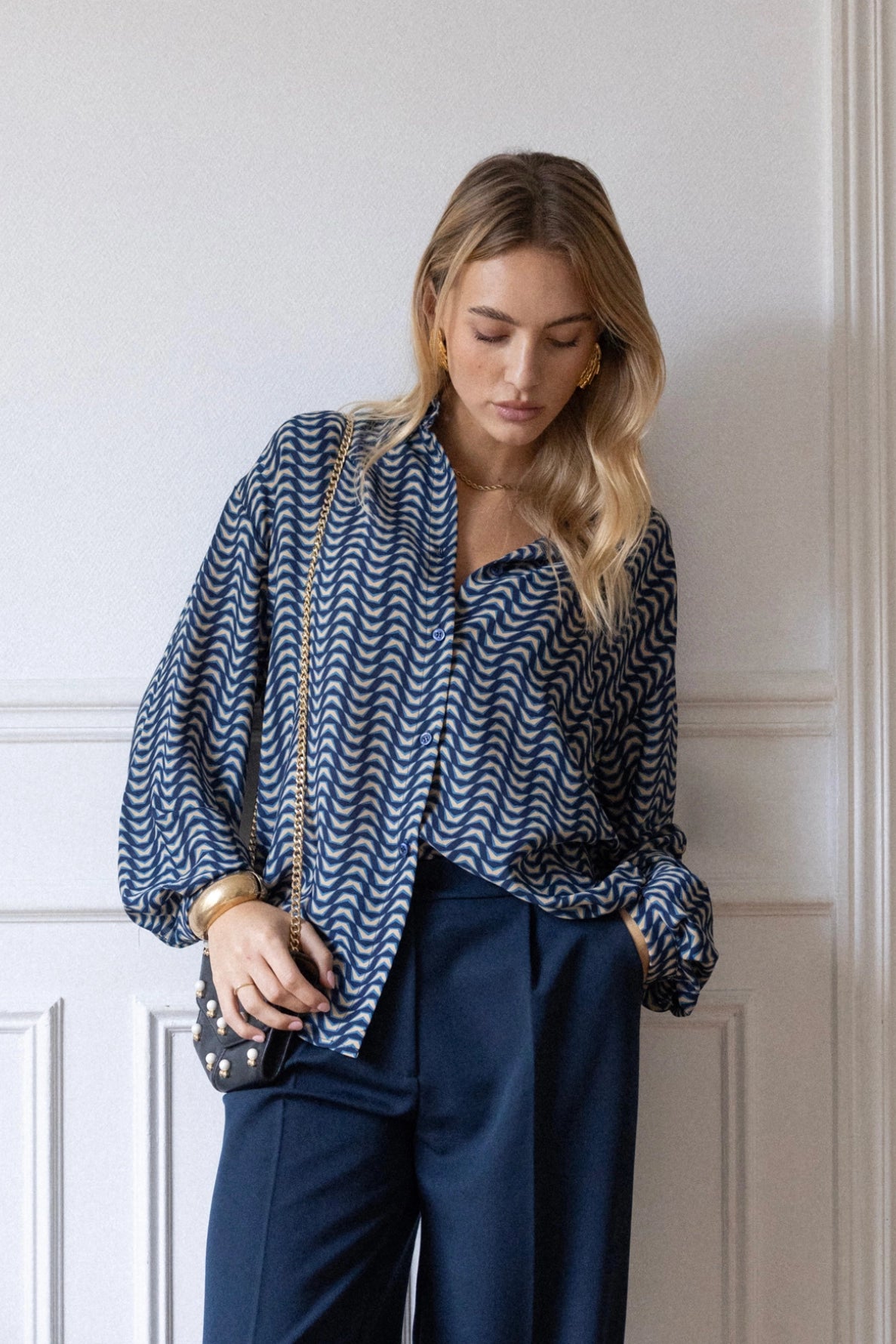 Het Laure shirt herinterpreteert klassiekers op een gedurfde en bewuste manier. Gemaakt van gerecyclede stoffen combineert het grafische elegantie met zomerse lichtheid. De exclusieve "Print Blue"-print geeft diepte aan al je outfits.