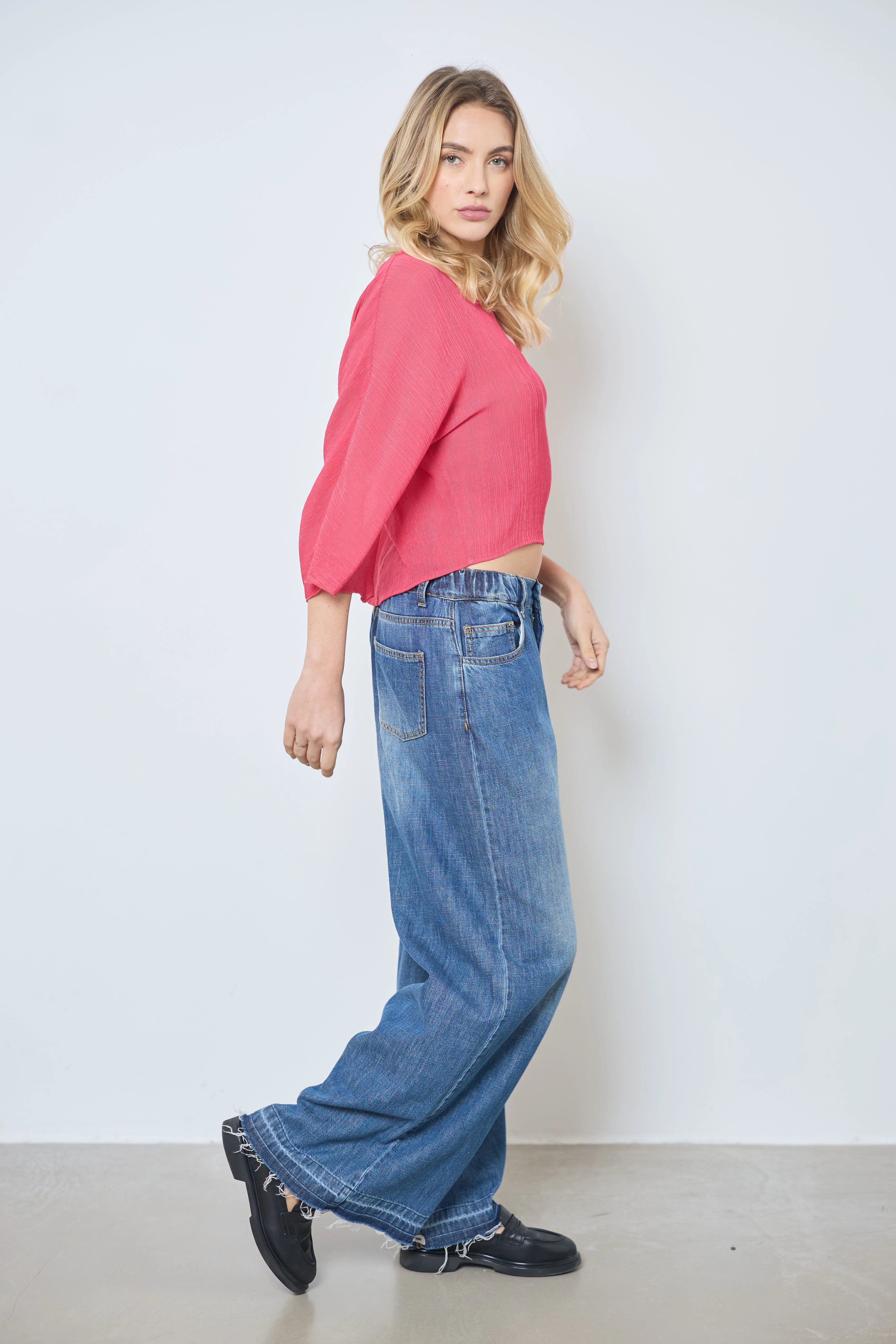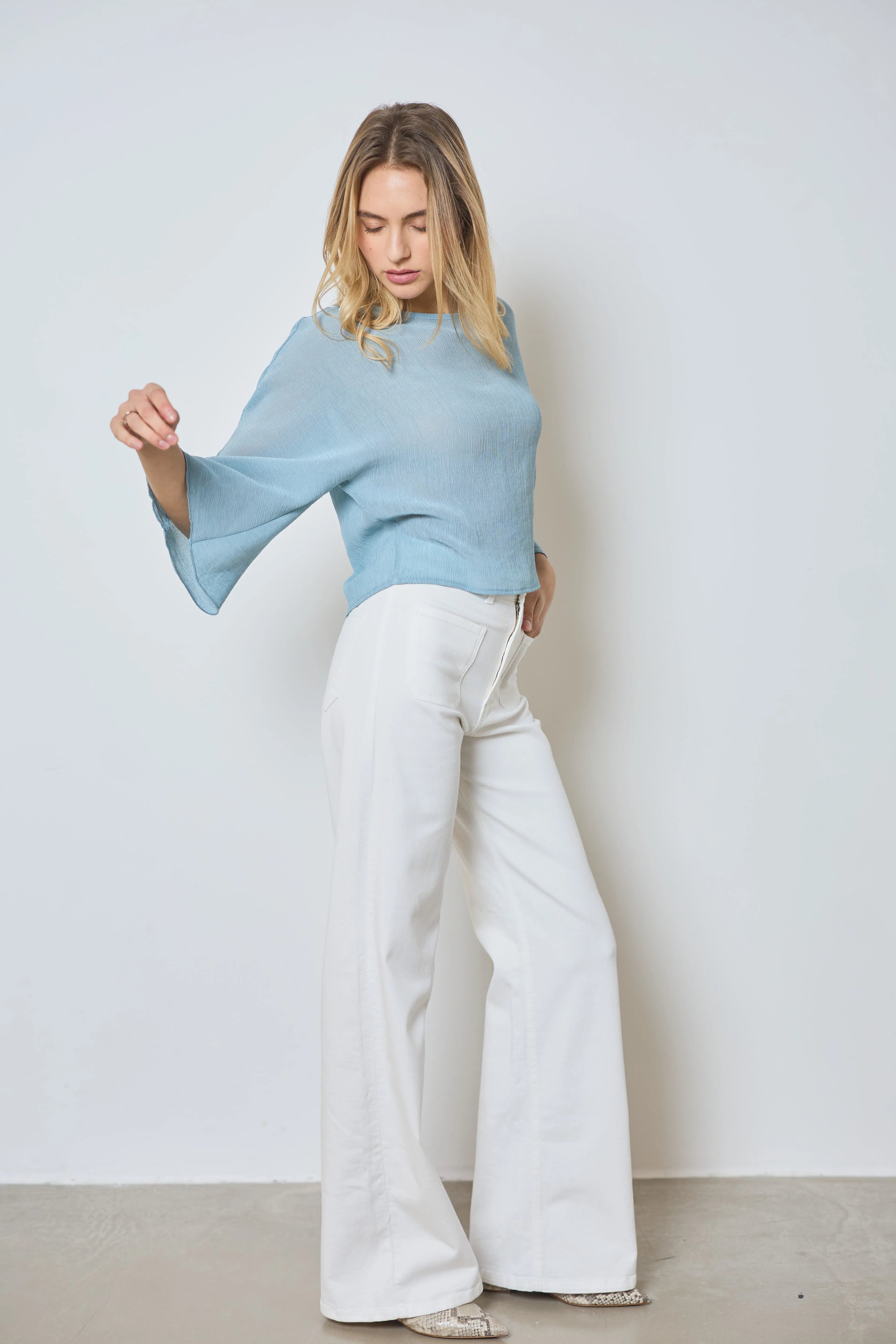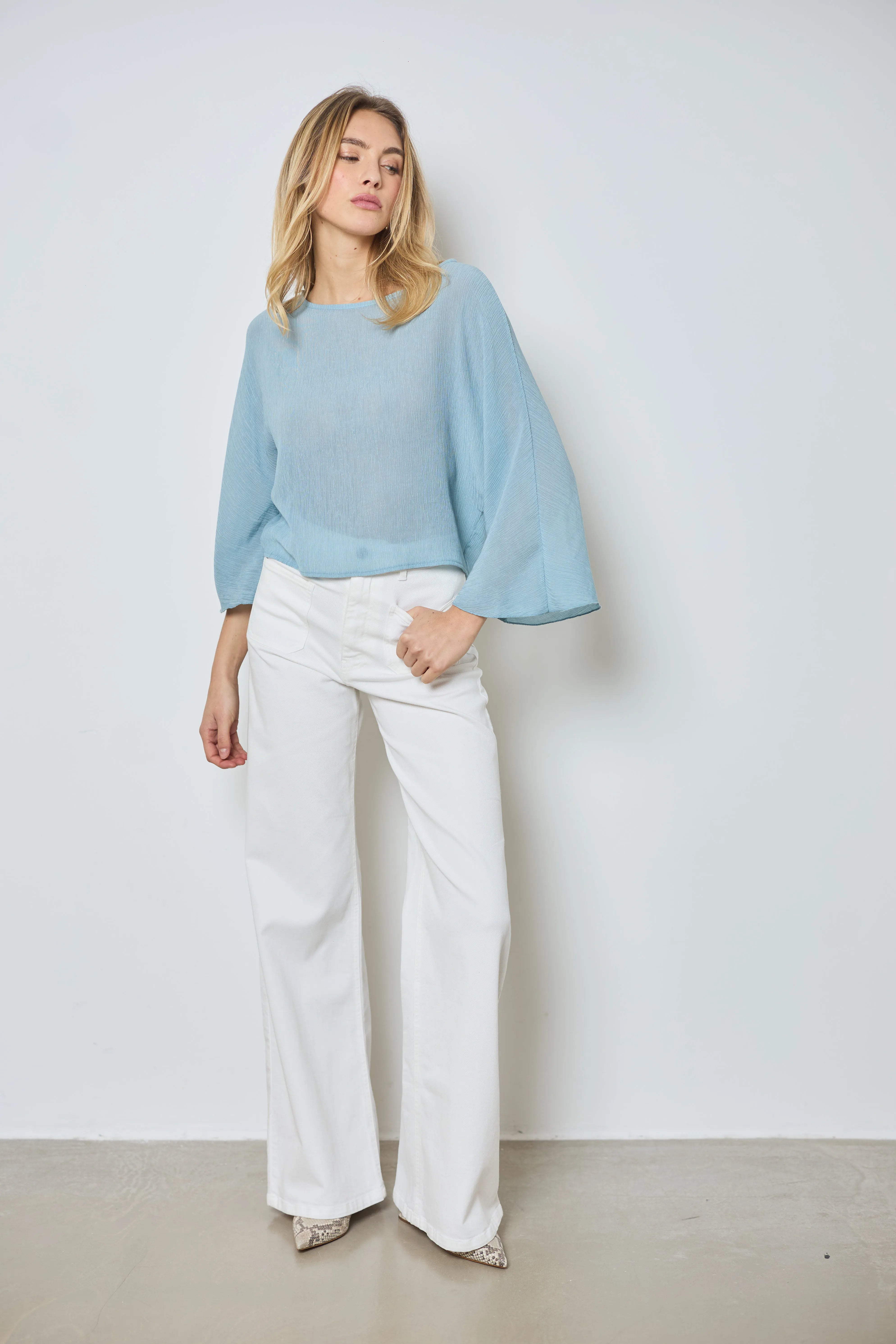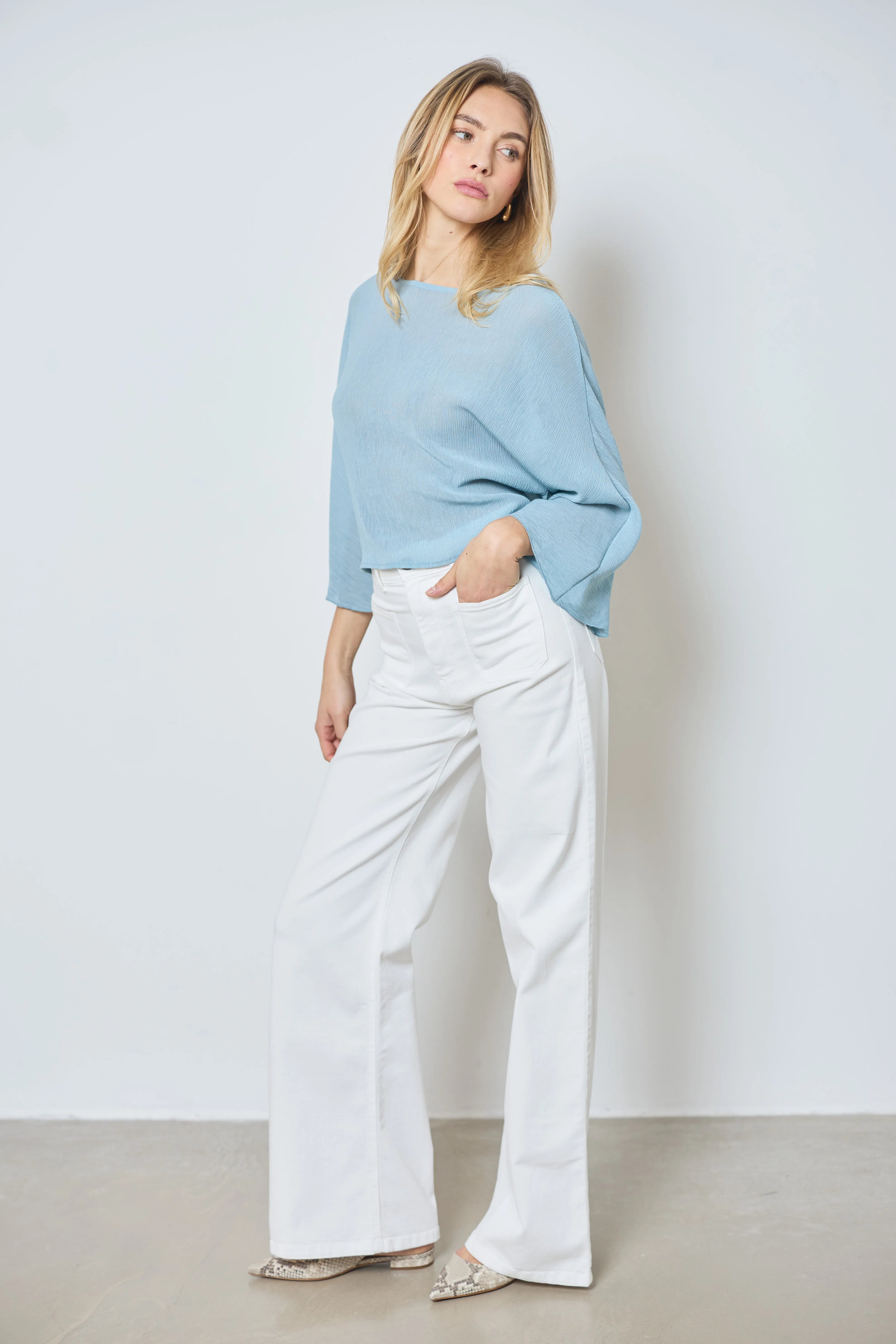 Lichtgewicht, gekreukeld materiaal met een subtiele transparantie.