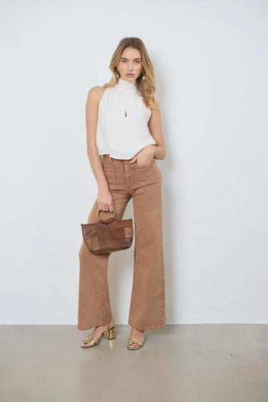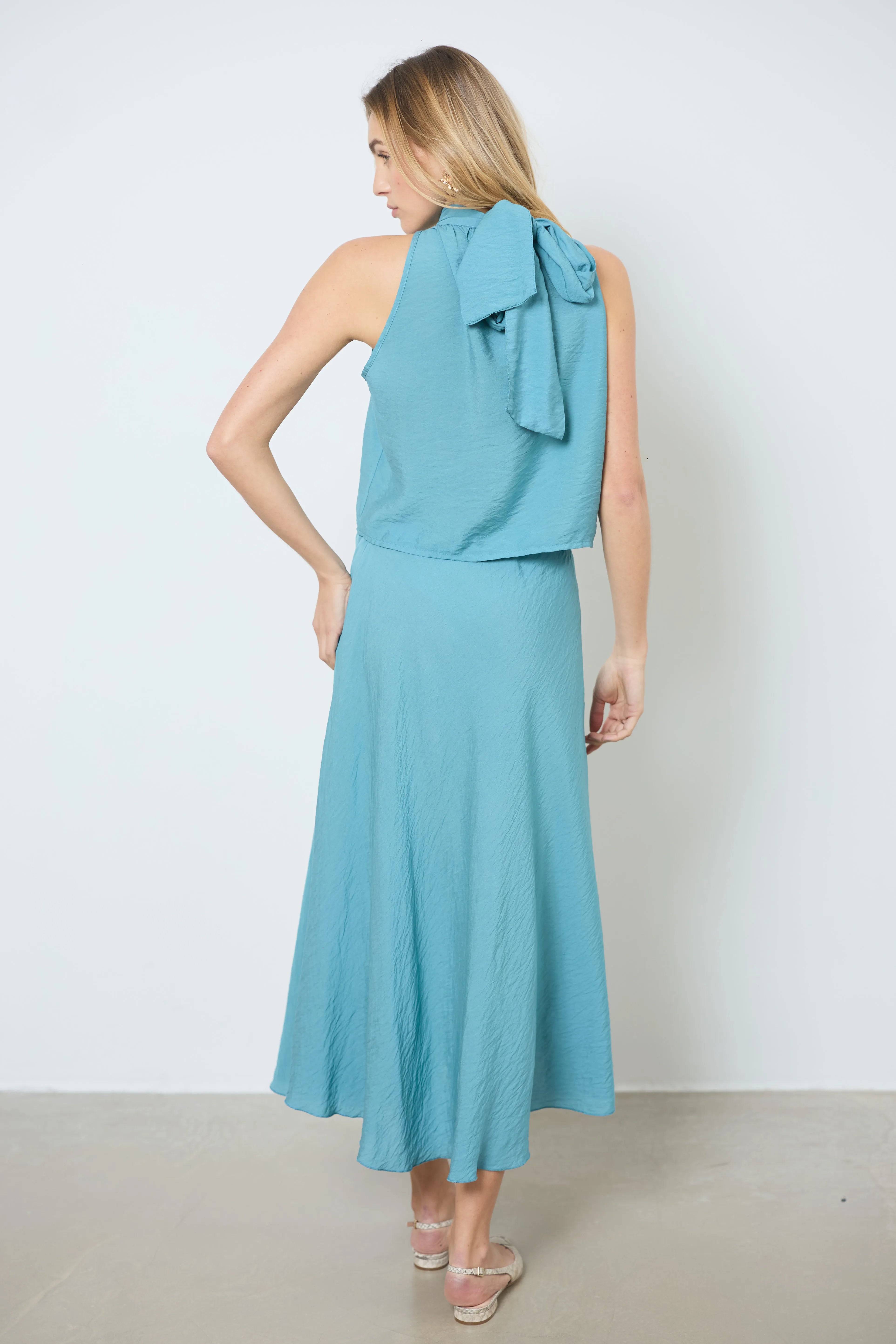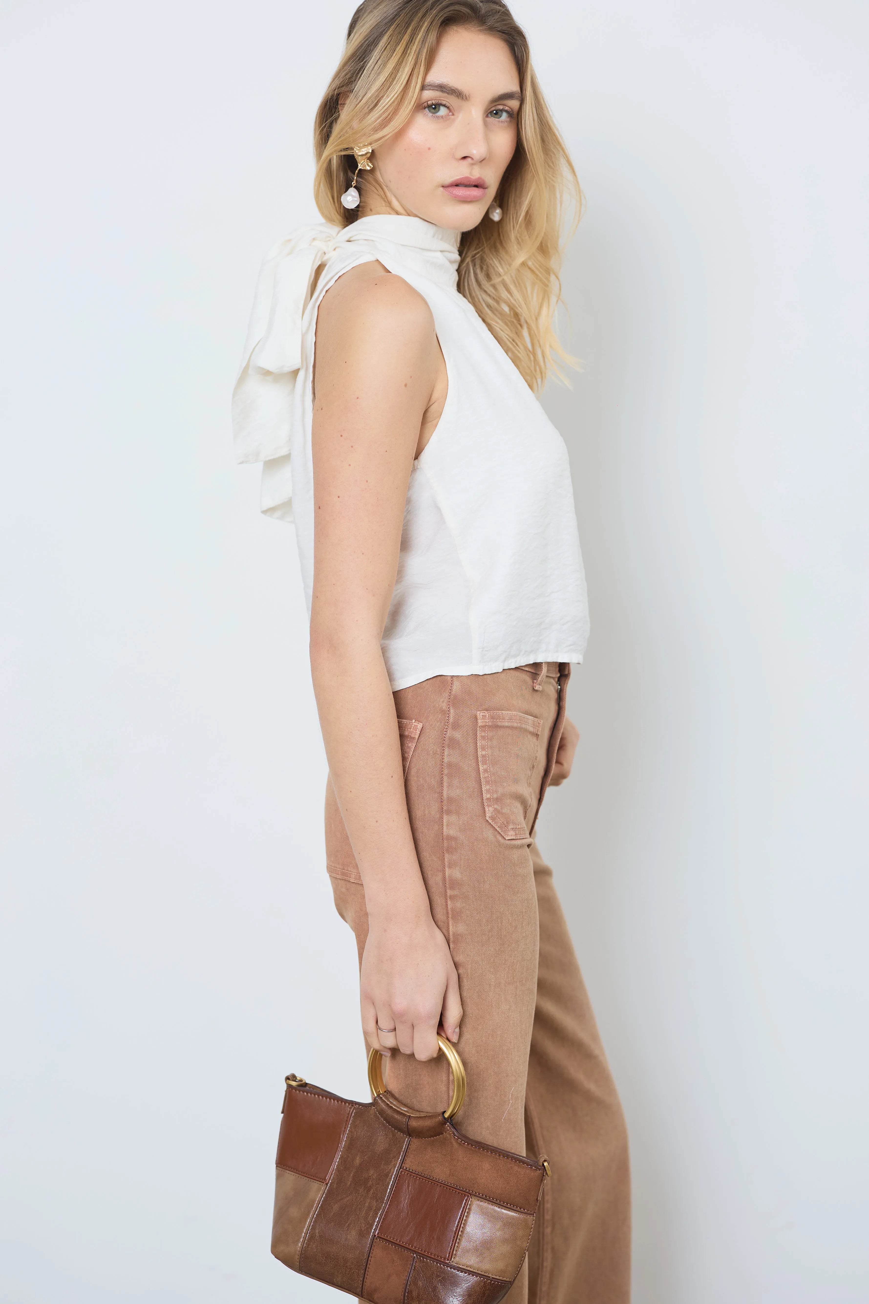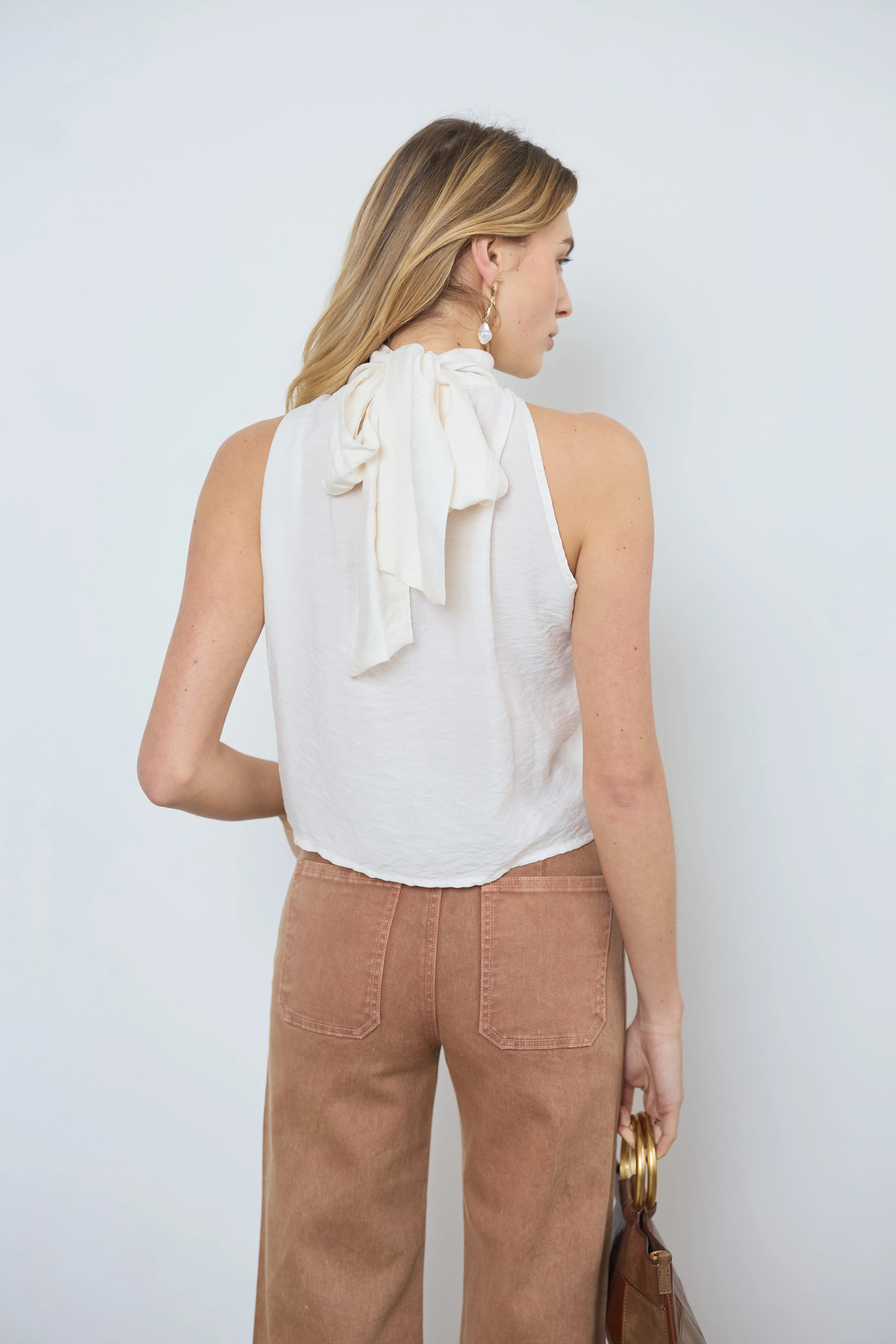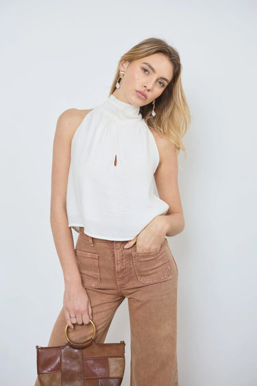 Geef je outfit een moderne en luchtige touch met deze mouwloze top. De top is aan de achterkant gestrikt en heeft een opening aan de voorkant, wat zorgt voor een frisse en elegante stijl.