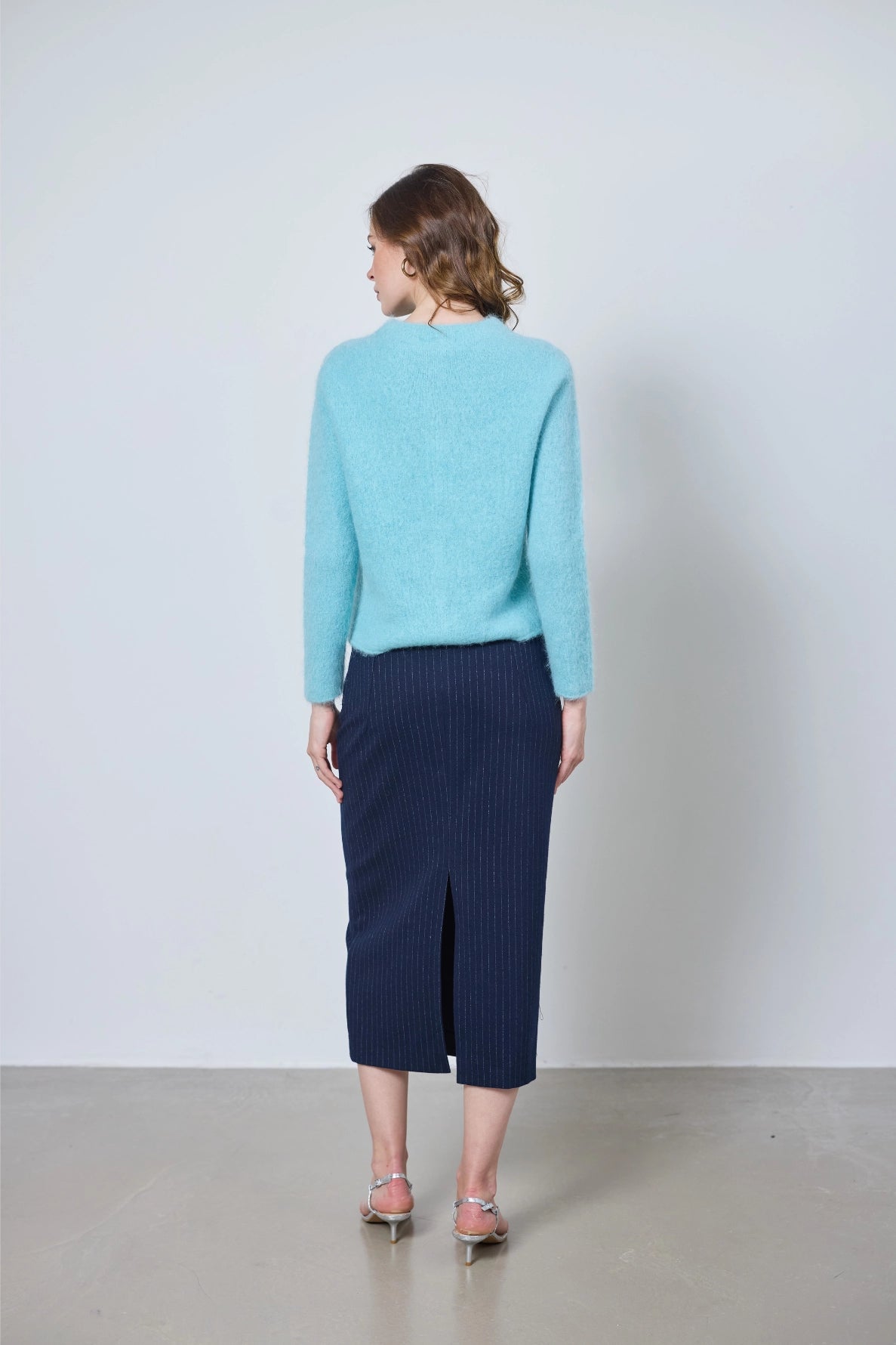 Accentueer je figuur met de Loha rok , een klassieker in een nieuw jasje. De getailleerde kokerrok, gecombineerd met een elegante split aan de achterkant, zorgt voor een vrouwelijke en verfijnde stijl, perfect voor alle gelegenheden. Deze rok past goed bij het Anaëlle jasje.