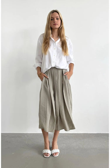 Een eenvoudige, elegante en veelzijdige midirok. Comfortabel en chic, voegt verfijning en stijl toe aan je dagelijkse outfits.