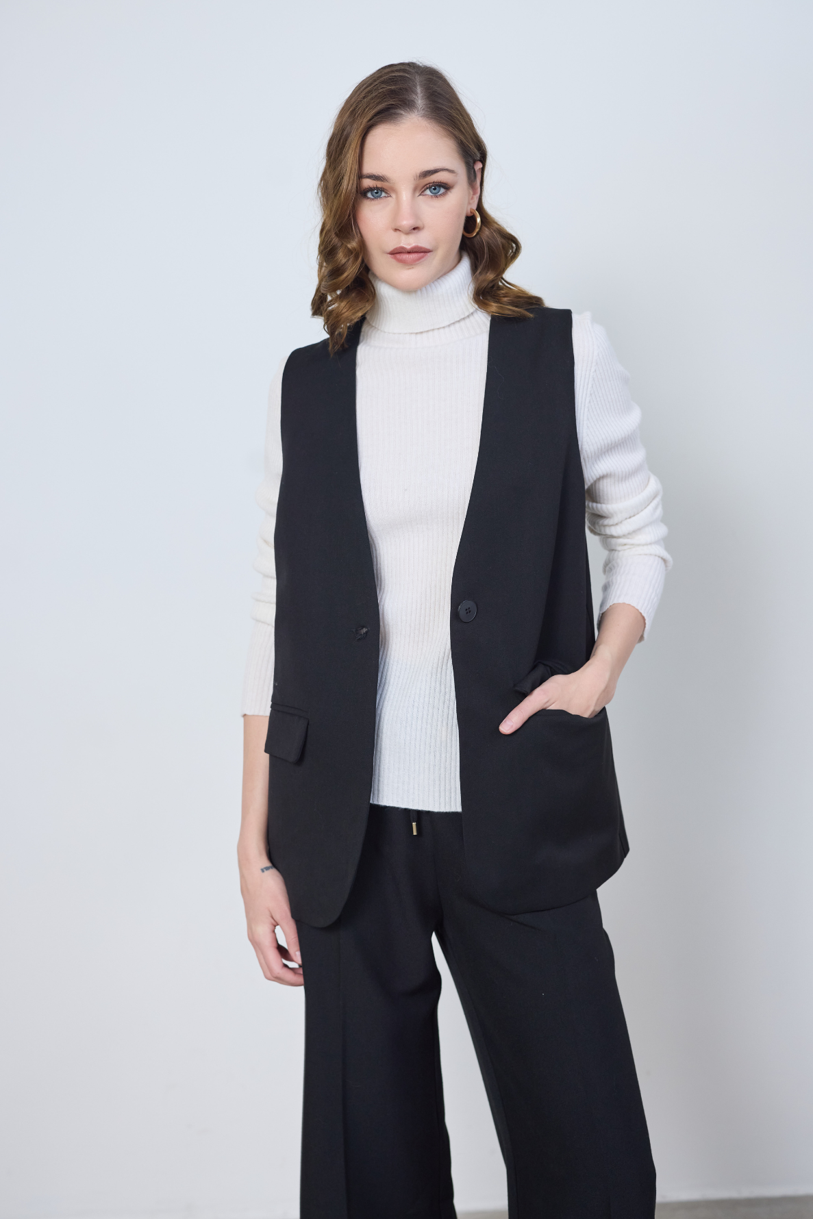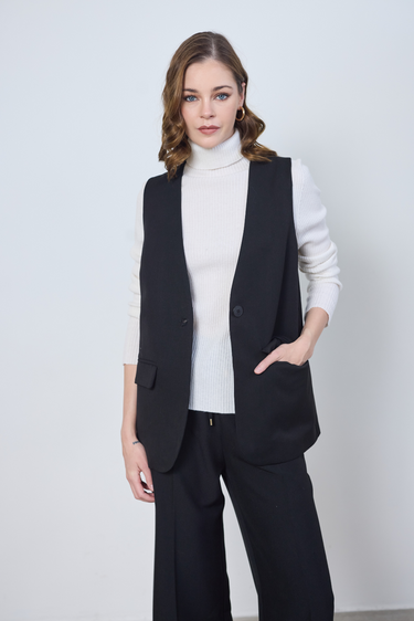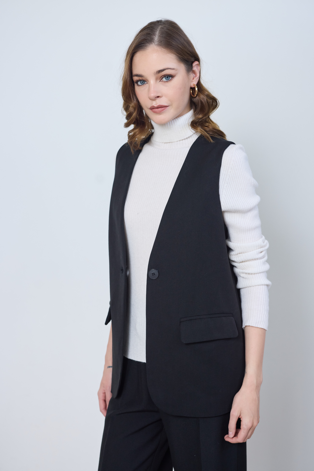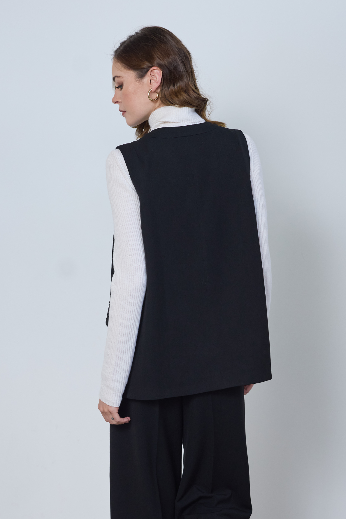 Adoptez une allure chic et contemporaine avec la veste tailleur sans manches Ambre. Sa coupe épurée et sa matière fluide en font une pièce idéale pour structurer vos looks tout en restant légère et confortable.