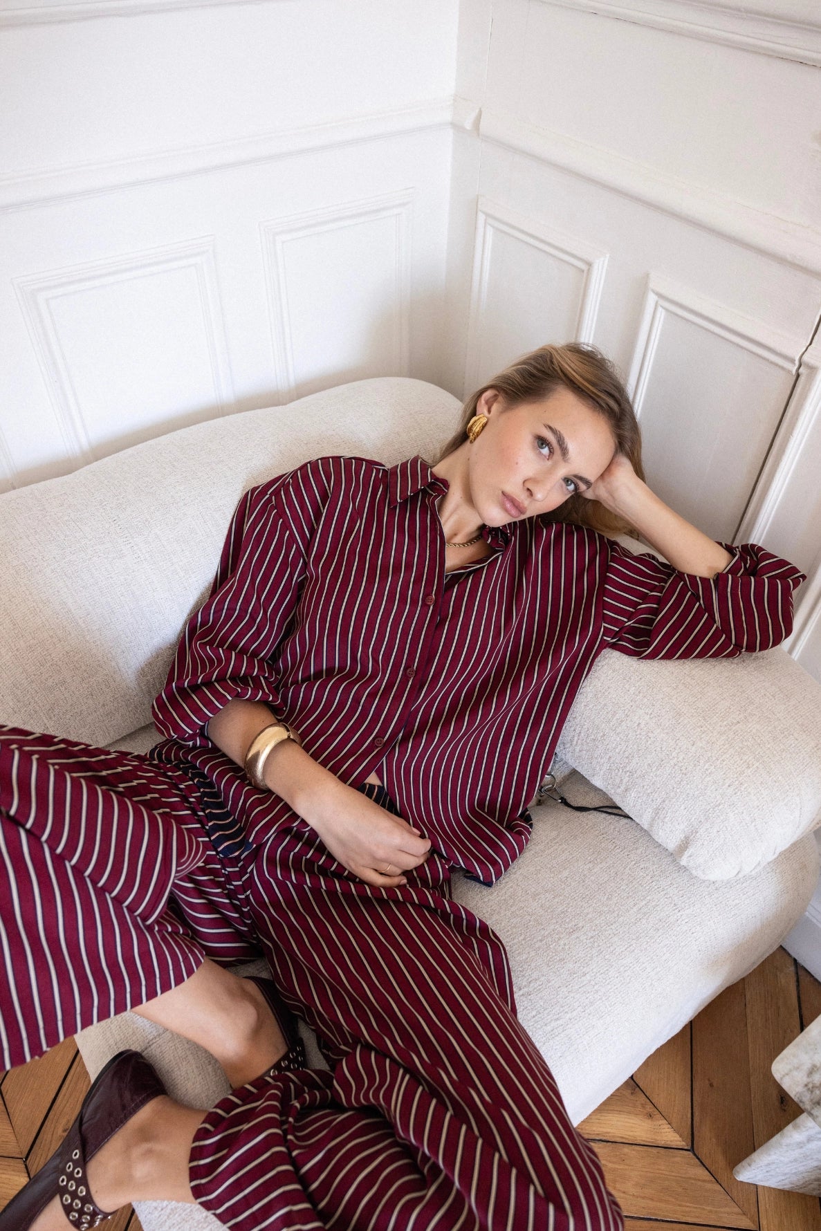 Alliez confort et caractère avec notre pantalon Charly, confectionné en tissus upcyclés. Sa coupe ample et son jeu de rayures bi-matières en font une pièce à la fois audacieuse et responsable.