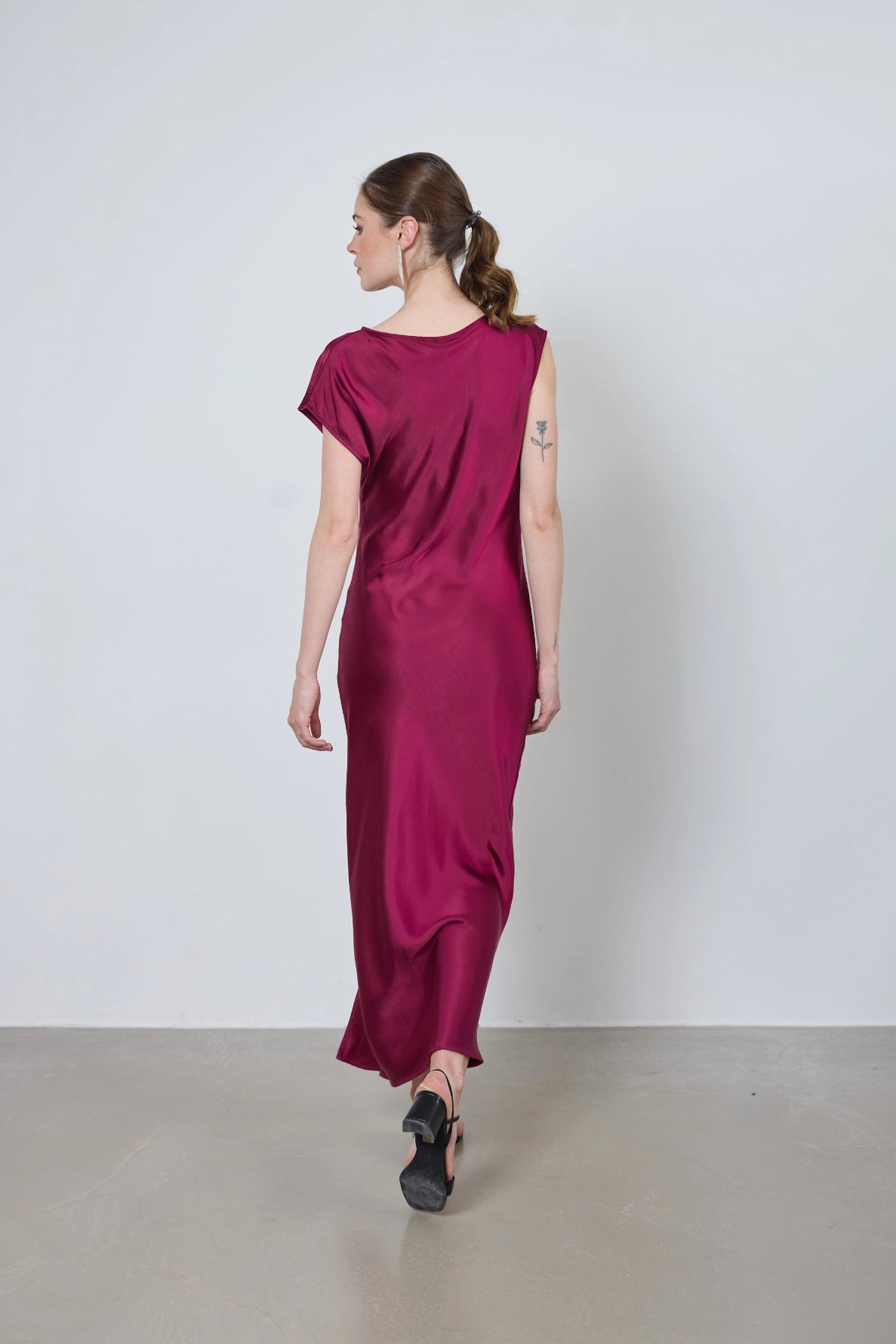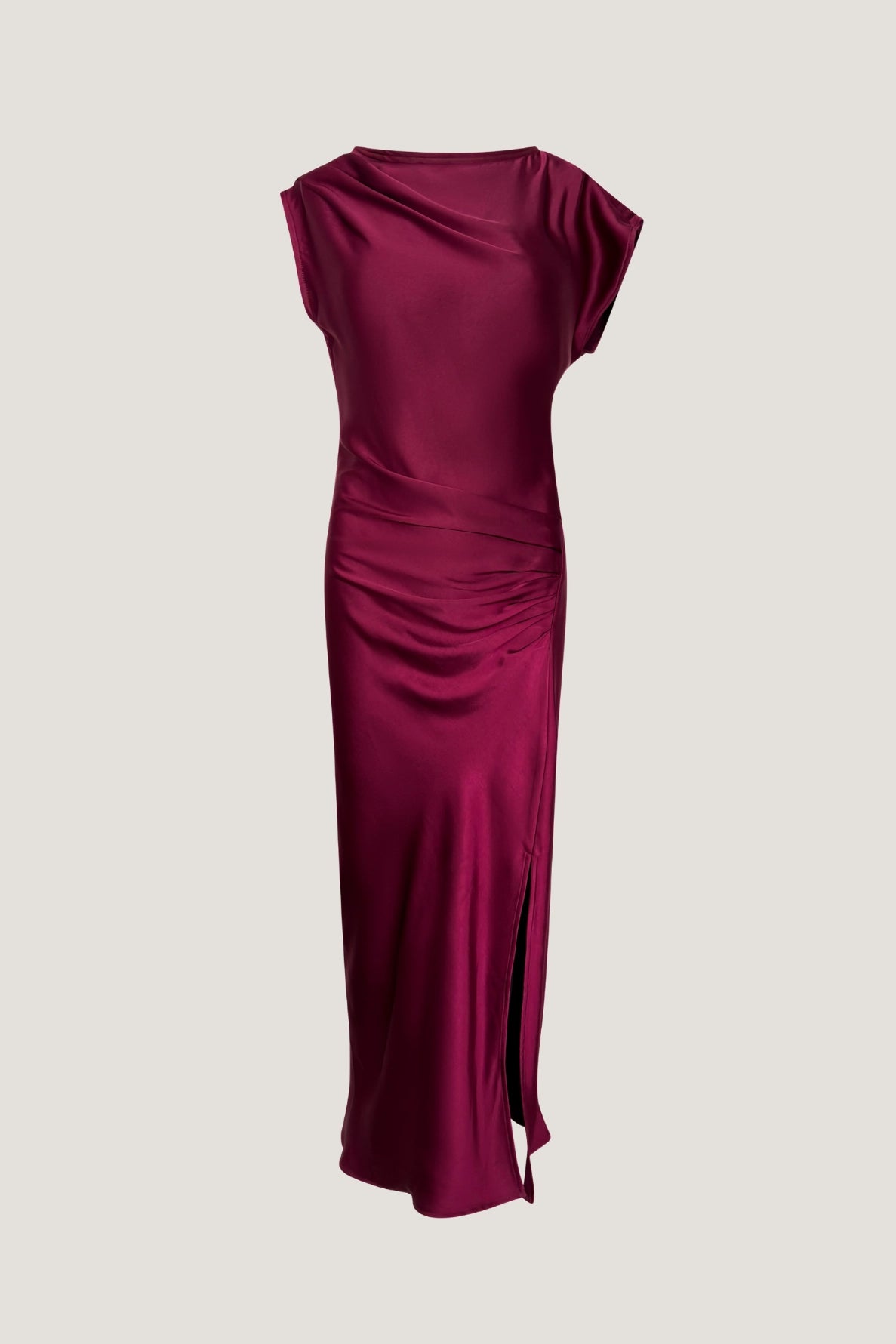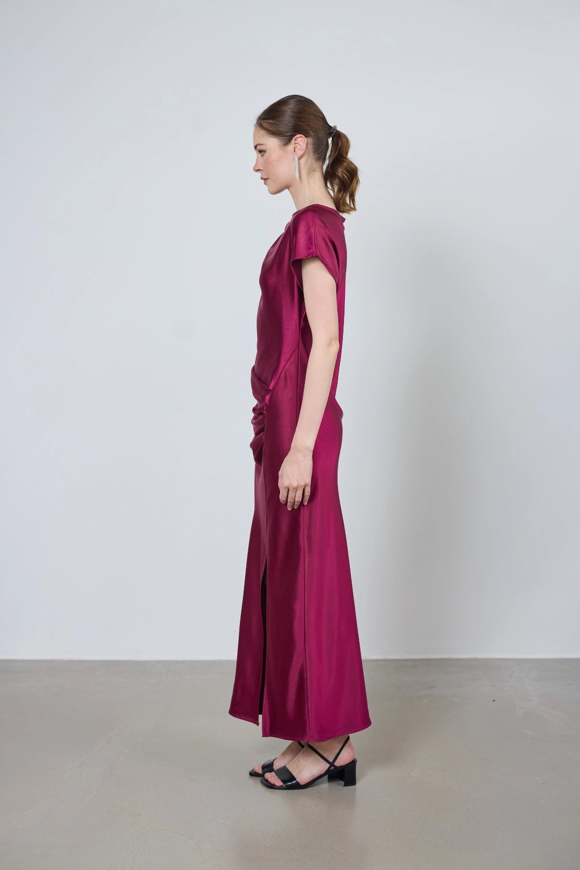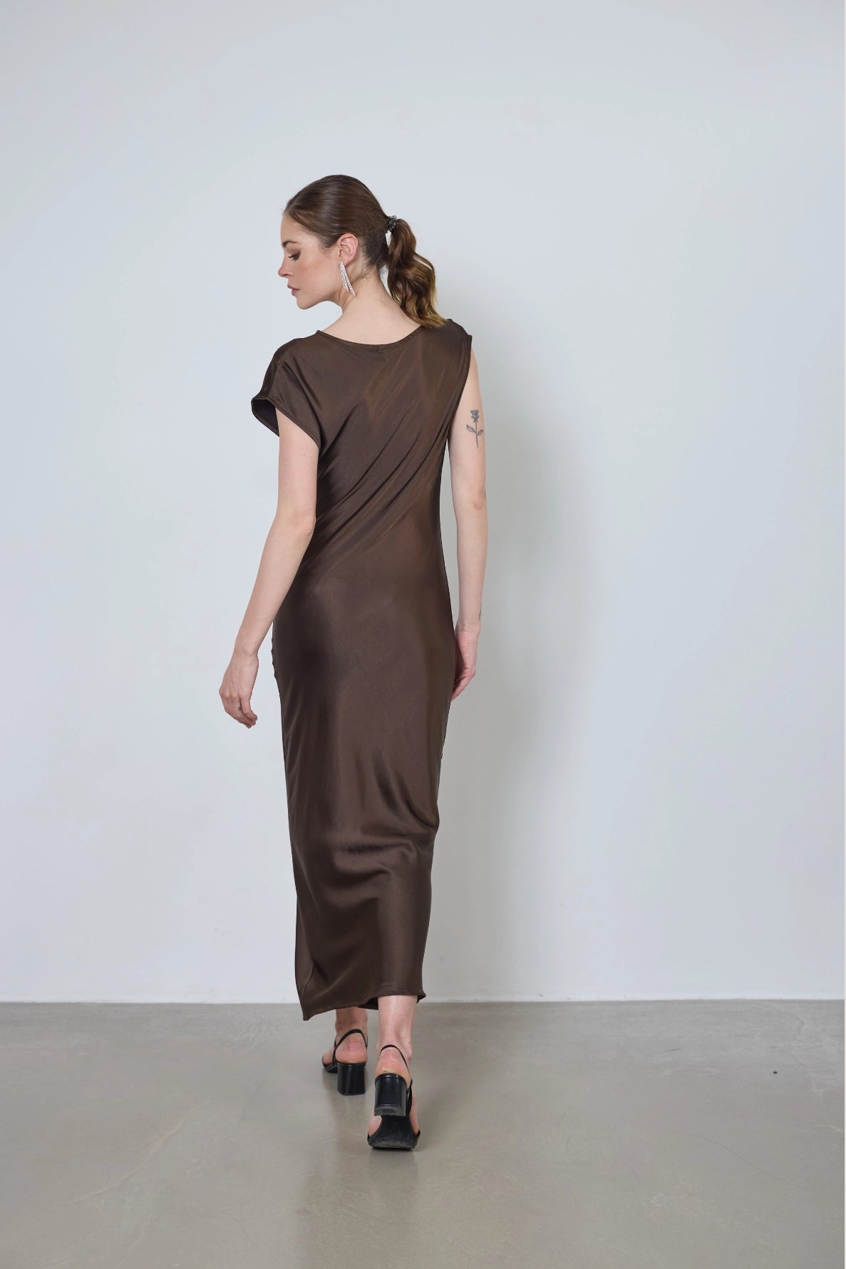 Misez sur l’élégance intemporelle avec la robe Christelle, une robe satinée parfaite pour les fêtes de fin d’année. Son tissu fluide apporte une touche sophistiquée, tandis que les plis sur le côté créent un effet asymétrique flatteur.